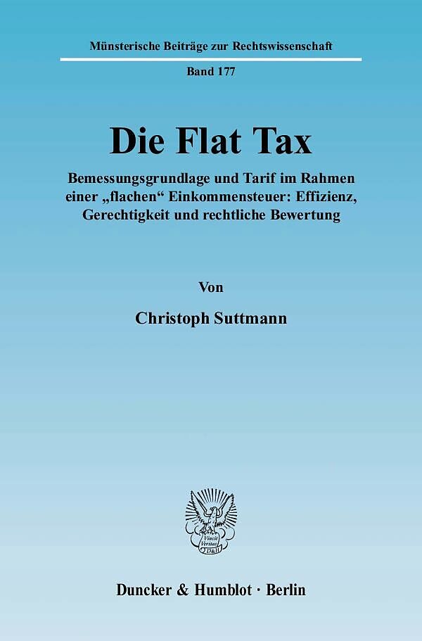 Christoph Suttmann untersucht das Konzept der "Flat Tax", das eine radikale Neurordnung der als zu kompliziert empfundenen Einkommensbesteuerung bedeuten könnte. Einführend stellt der Autor dieses in den 1980er Jahren in den USA von Hall / Rabushka entwickelte...