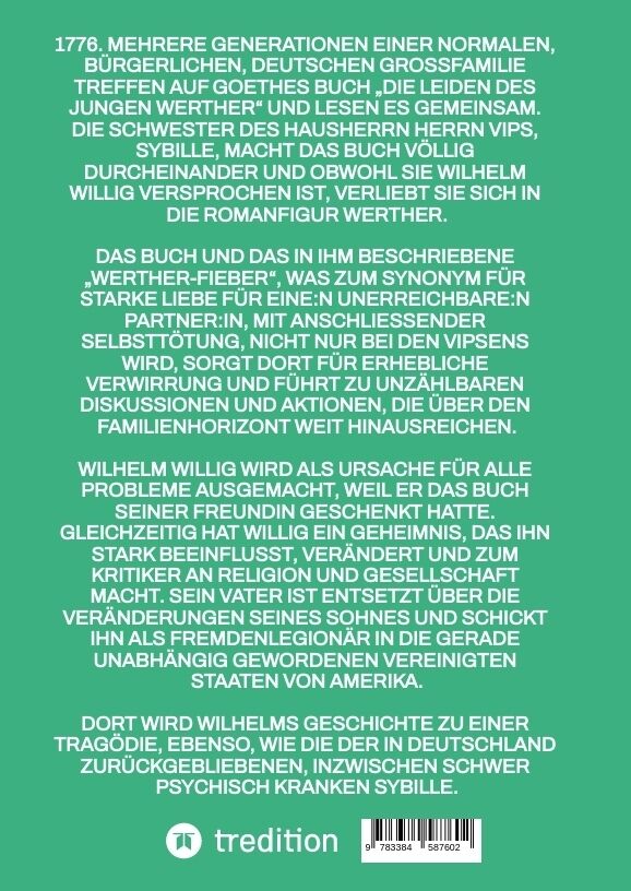 1. Mehrere Generationen einer normalen, bürgerlichen, deutschen Großfamilie treffen auf Goethes Buch Die Leiden des jungen Werther und lesen es gemeinsam. Die Schwester des Hausherrn Herrn Vips, Sybille, macht das Buch völlig durcheinander und obwohl sie Wi...