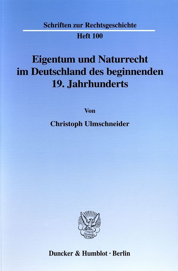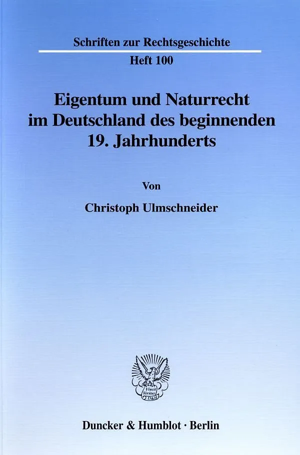 Ausgehend von einer Gegenüberstellung der älteren und neueren deutschen Naturrechtslehre unterzieht Christoph Ulmschneider im ersten Teil den aktuellen Forschungsstand zur Theorie der Eigentumsbegründung um 1800 einer kritischen Würdigung. Dabei stellt der Aut...
