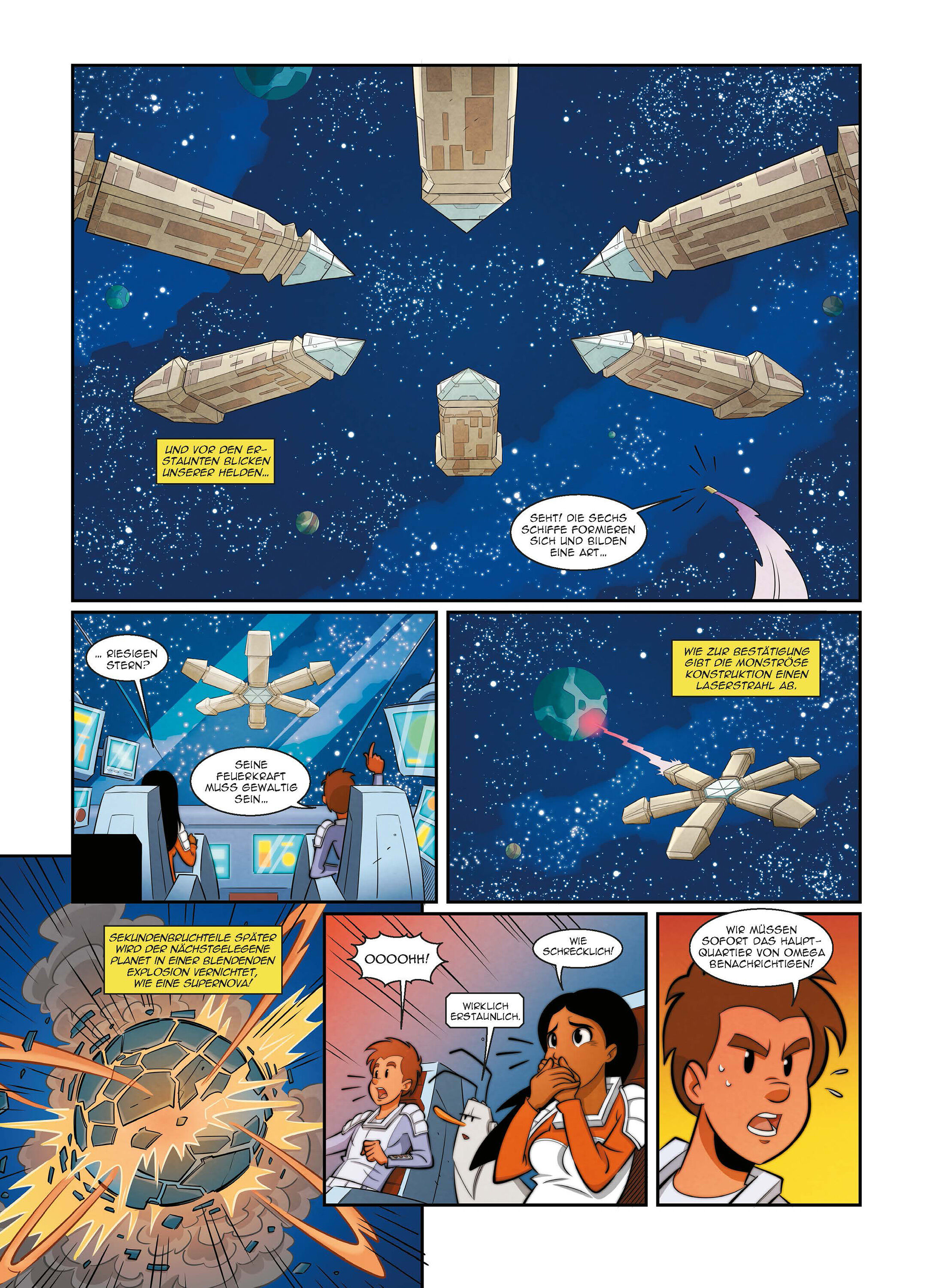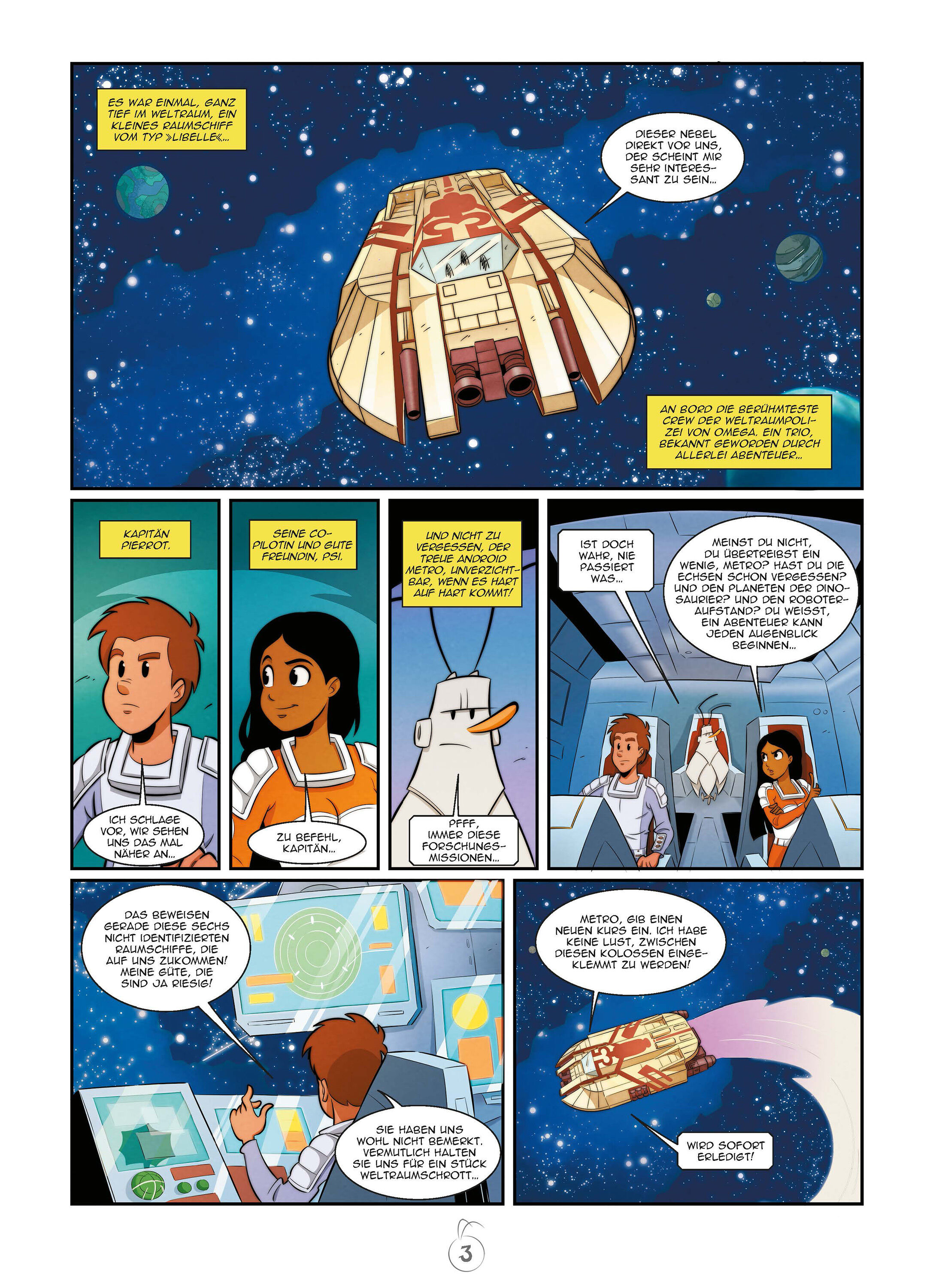 Der Raumpilot Pierrot, die Telepathin Psi und der Roboter Metro sind nach einer Mission auf dem Rückweg zum Planeten Omega. Zufällig stoßen sie auf eine Flotte gigantischer Raumschiffe, die im Weltraum Schießübungen veranstalten. Dabei werden unfassbar zerstör...