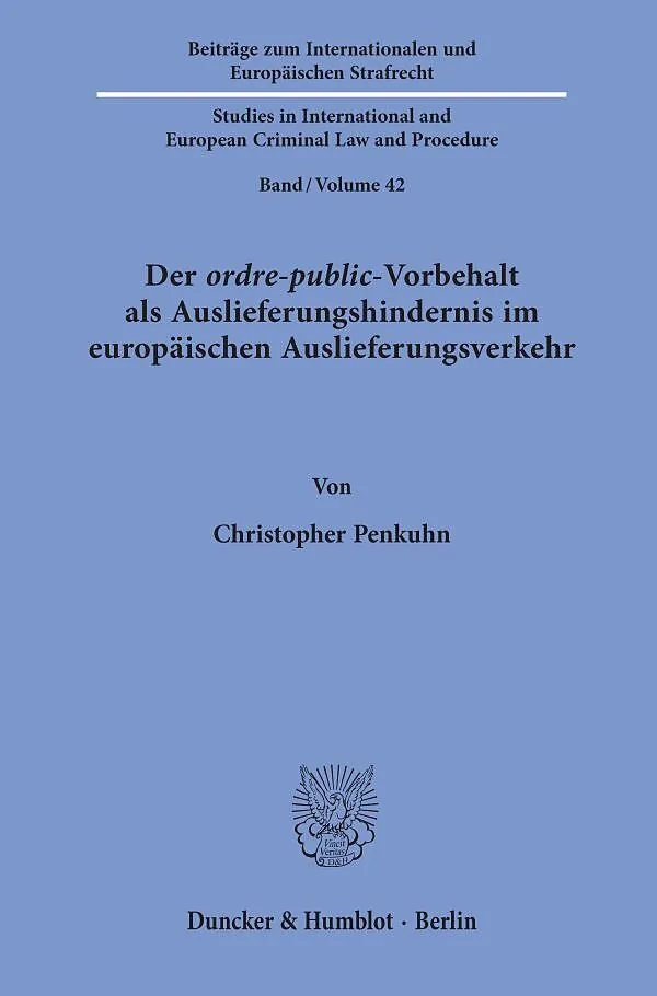 Die Untersuchung beleuchtet den sog. Wesentlichkeitsvorbehalt (ordre public-Einwand) und seine auslieferungshindernde Wirkung gegenüber der Auslieferungspflicht im Rahmen der EU und des Europarats. Hierbei wird anhand der verschiedenen Rechtsebenen nationales,...