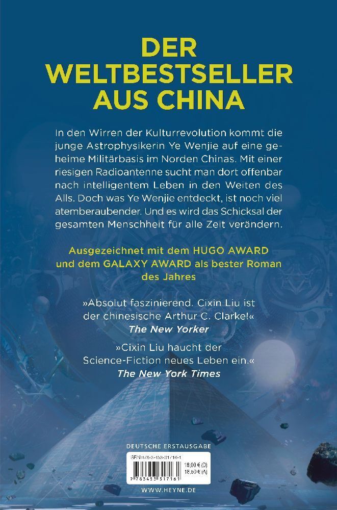 Die Science-Fiction-Sensation aus China China, Ende der 1960er-Jahre: Während im ganzen Land die Kulturrevolution tobt, beginnt eine kleine Gruppe von Astrophysikern, Politkommissaren und Ingenieuren ein streng geheimes Forschungsprojekt. Ihre Aufgabe: Signale...