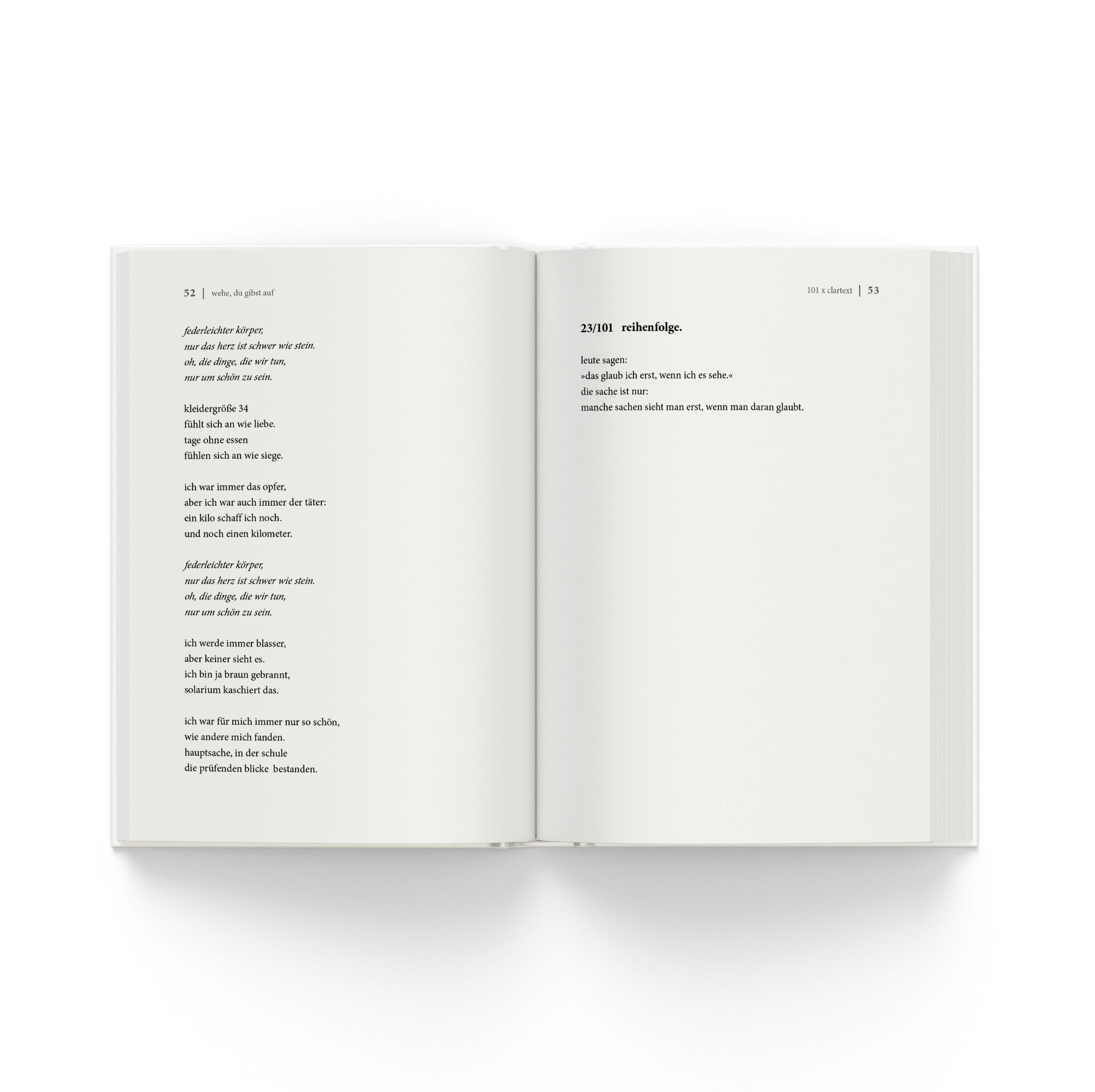 Ein Buch, das dein Denken verändert. Und damit auch dein Leben. In diesem Buch erwarten dich 101 schonungslos ehrliche und tief verletzliche Texte über (Selbst-)Liebe und Schönheitsideale, über Politik und Herzbruch, über Einsamkeit und Hoffnung. Clara Lösel,...112 Kunden haben diesen Artikel kürzlich gekauft.