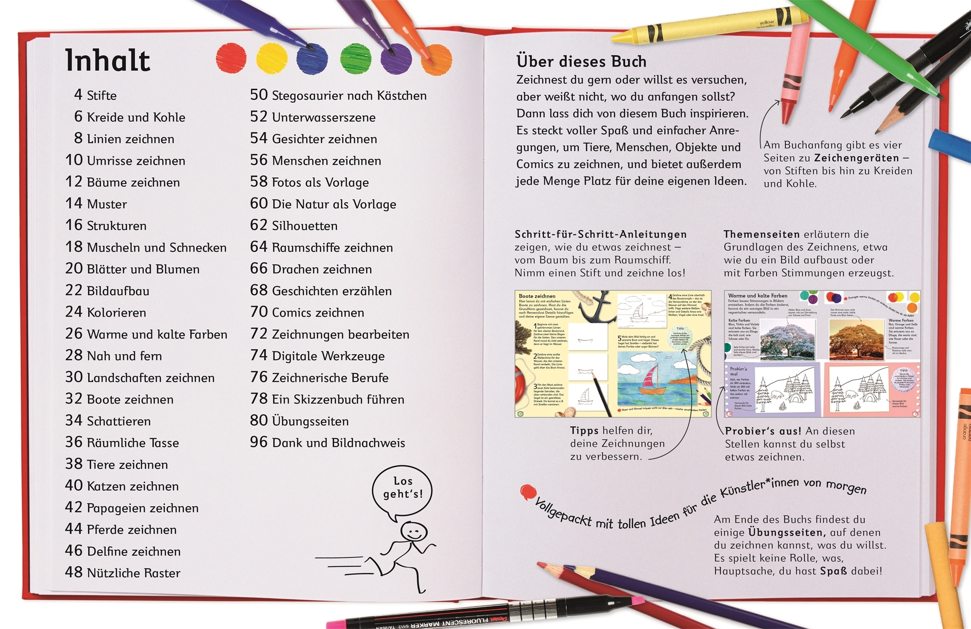 Kinder sind Künstlerinnen! Zeichnen macht Spaß, entspannt, bietet einen Rückzugsort und fördert Feinmotorik und Kreativität. Kinder malen und zeichnen mit großer Begeisterung. Und mit diesem Buch bekommen sie zahlreiche Tipps und Tricks an die Hand: Alles run...
