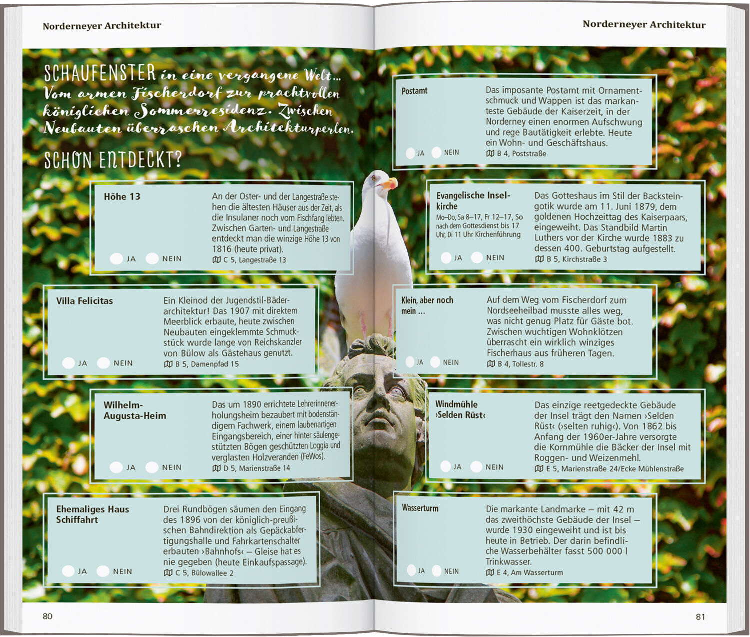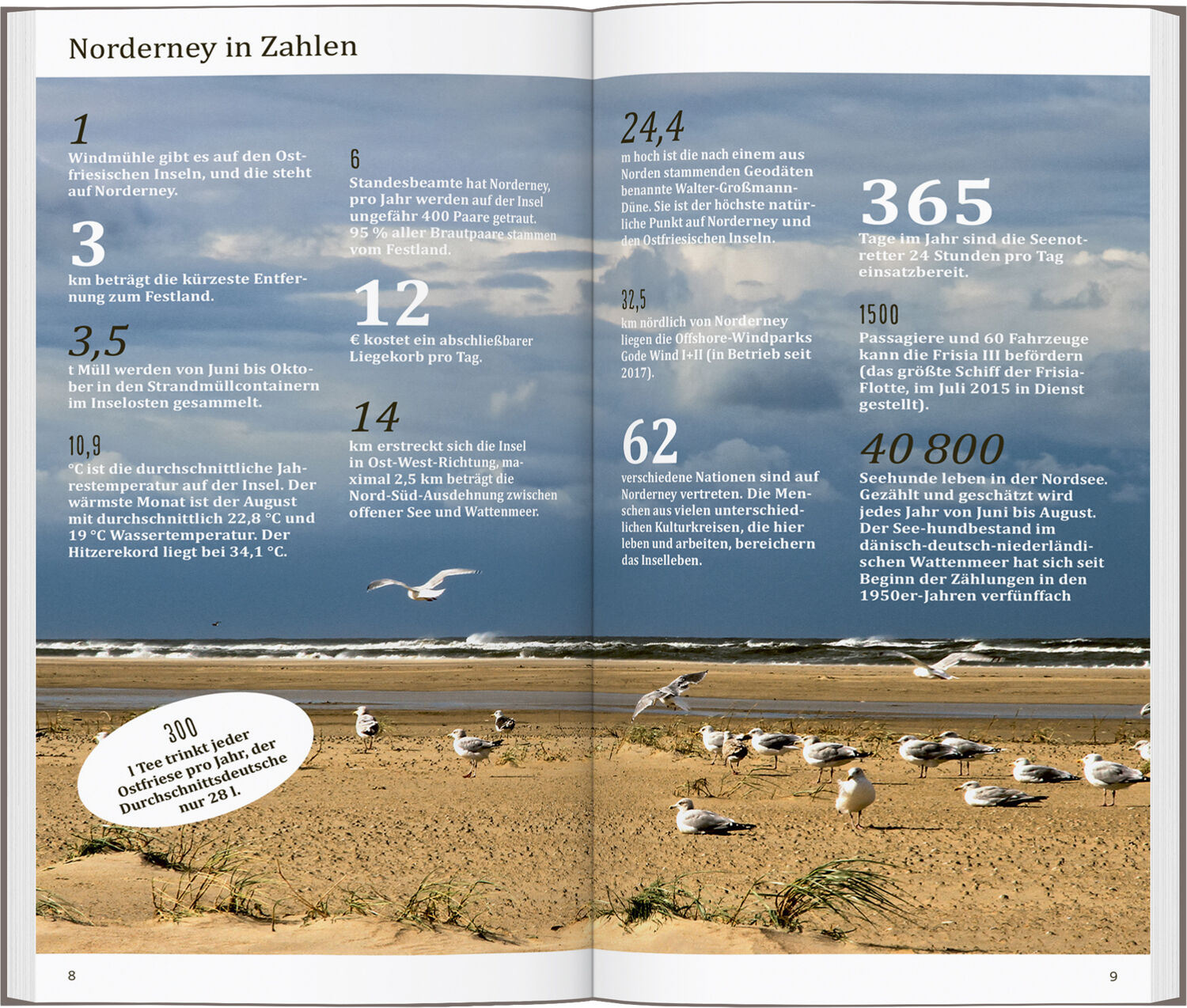 Zu Sandstränden, Dünen und Nordsee, zu Wind, Wellen und Wattenmeer bildet die Stadt Norderney das Kontrastprogramm: mit Thalasso-Tempel und hochkarätigem Kulturangebot, schicken Hotels und Boutiquen, lässigen Bars und coolen Strandcafés. Mit den 15 »Direktkap...