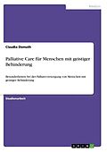 Studienarbeit aus dem Jahr 2018 im Fachbereich Gesundheit - Pflegewissenschaft - Palliative Care, Note: 1,5, , Veranstaltung: Weiterbildung Palliative Care 2018, Sprache: Deutsch, Abstract: In Deutschland leben so viele ältere Menschen mit Behinderung wie nie ...Studienarbeit aus dem Jahr 2018 im Fachbereich Gesundheit - Pflegewissenschaft - Palliative Care, Note: 1,5, , Veranstaltung: Weiterbildung Palliative Care 2018, Sprache: Deutsch, Abstract: In Deutschland leben so viele ältere Menschen mit Behinderung wie nie zuvor. Die durchschnittliche Lebenserwartung geistig behinderter Menschen gleicht sich immer mehr der Allgemeinbevölkerung an. Ein Grund für die gesteigerte Lebenserwartung ist die fortlaufende Entwicklung der Medizin und der Pflege. Neue, innovative Therapiemöglichkeiten in Kombination mit pädagogischen und pflegerischen Maßnahmen und Förderungsprogrammen ermöglichen es, Menschen mit Behinderung ein fortgeschrittenes Alter zu erlangen. Neben der allgemeinen Altersentwicklung muss man in diesem Zusammenhang auch die so genannten "Euthanasie" -Morde von 1939-1945 in Deutschland erwähnen, bei denen das NS-Regime systematisch über 70.000 Menschen mit Behinderung getötet hat. Diese Geschehnisse hatten einen großen Einfluss auf die demografische Entwicklung von Menschen mit Behinderung in Deutschland. Gerontologische Aspekte gewinnen in der Behindertenhilfe dadurch erst seit rund zwei Jahrzehnten an Bedeutung, eine erste Generation alter Menschen mit geistiger Behinderung hat nun das Rentenalter erreicht. Insbesondere Einrichtungen der stationären und ambulanten Behindertenhilfe sehen sich mit diesen neuen Herausforderungen konfrontiert, da ein Großteil der älteren geistig behinderten Menschen dort wohnen und arbeiten. Die Wohneinrichtungen und ihre Mitarbeiter müssen diese Herausforderungen im Umgang und mit der Begleitung von alten, schwer kranken und sterbenden Bewohner nun immer mehr in ihre Alltagsaufgaben integrieren. Die Problematik bezogen auf die Pflege und Betreuung von Menschen mit geistiger Behinderung im Alter ist hierbei zum einen, dass die Erfahrungen auf diesem Gebiet in Deutschland fehlen, zum anderen ist die Arbeit in der Behindertenhilfe in der Vergangenheit mehr auf die Heilpädagogik , die Förderung und die Betreuung sowie die Versorgung ausgerichtet gewesen. So arbeiten in der Behindertenhilfe überwiegend Heilpädagogen, Sozialpädagogen, therapeutische Dienste (Psychologen, Ergotherapeuten, Physiotherapeuten), Erzieher und nur sehr wenige Pflegefachkräfte. Es ist nun dringend notwendig auch die Palliativ Pflege in der Behindertenhilfe zu etablieren und fest zu verankern.