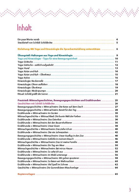 Entspannte Kinder lernen leichter! In Schildi Schildkröte erzählt gern finnden Sie spezielle Haltungen und Übungsabfolgen, die die Sprachentwicklung Ihrer Kita-Kinder unterstützen. Sanfte Übungen aus Yoga und Kinesiologie entspannen die Kinder, lösen Blockaden...