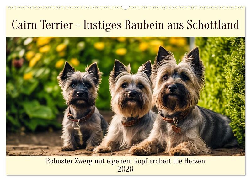 Der Cairn Terrier ist eine kleine, robuste Hunderasse, die ursprünglich aus Schottland stammt. Sie haben ein dichtes, drahtiges Fell in verschiedenen Farben wie sand, rot, grau oder gestromt. Ihr Gesicht ist oft von einer markanten Bart- und Augenbrauenbehaaru...
