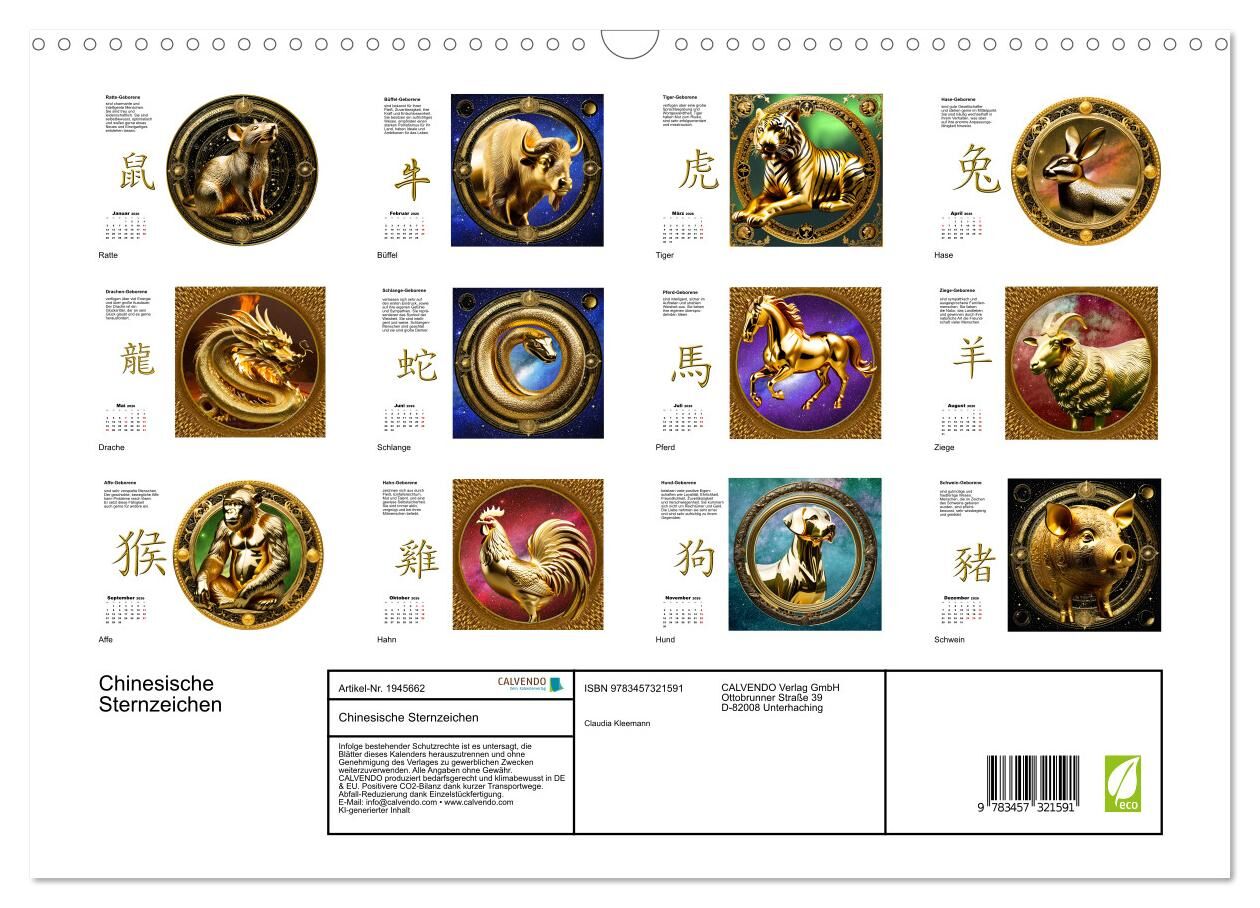 Chinesische Sternzeichen (Wandkalender 2026 DIN A3 quer), CALVENDO Monatskalender