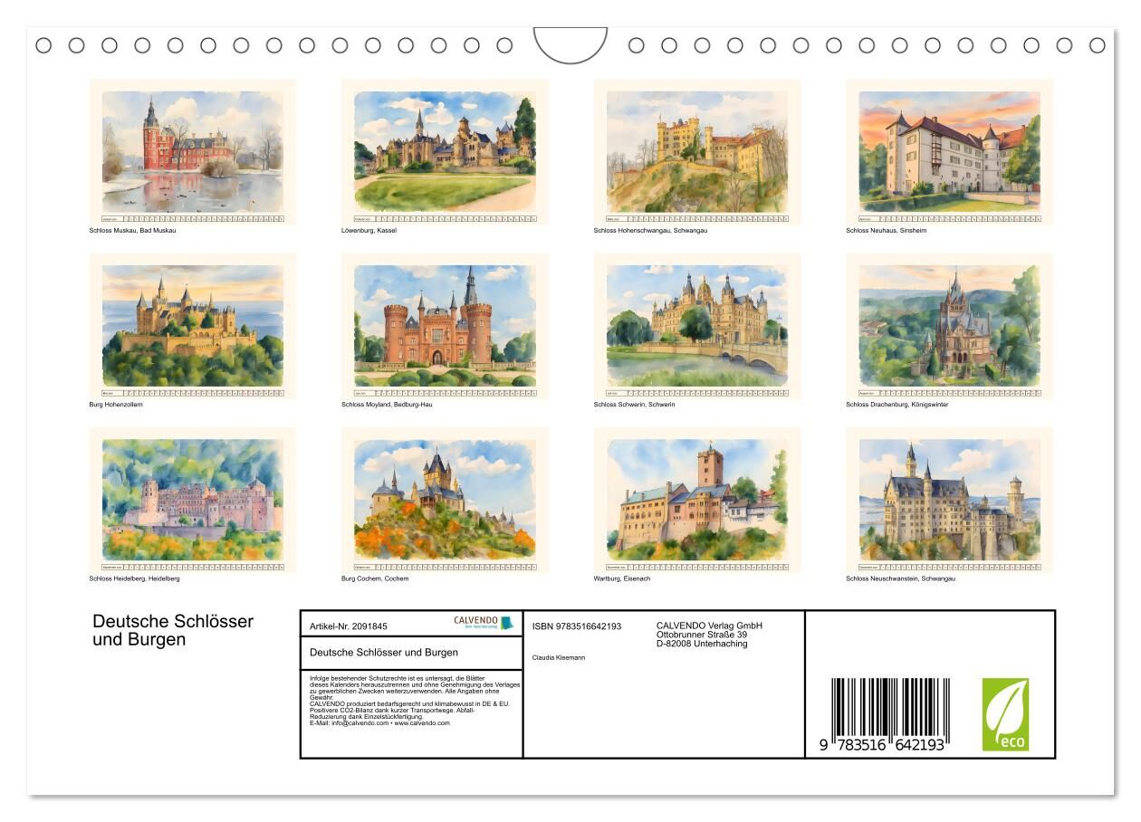 Deutsche Schlösser und Burgen (Wandkalender 2026 DIN A4 quer), CALVENDO Monatskalender