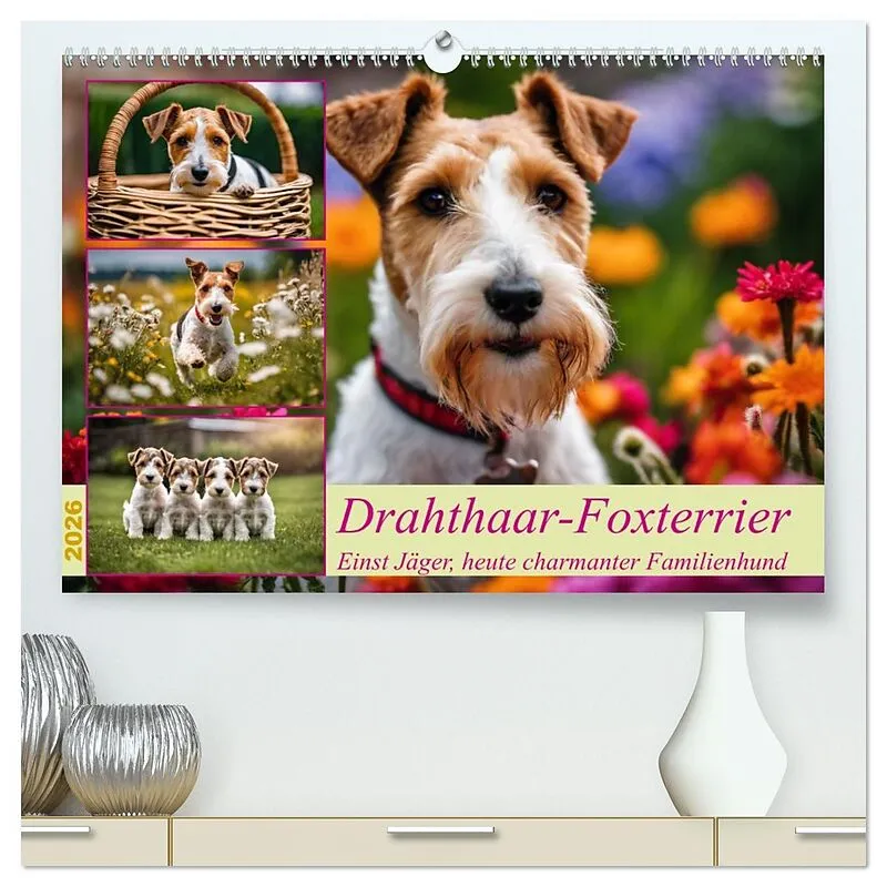 Drahthaar-Foxterrier (hochwertiger Premium Wandkalender 2026 DIN A2 quer), Kunstdruck in Hochglanz