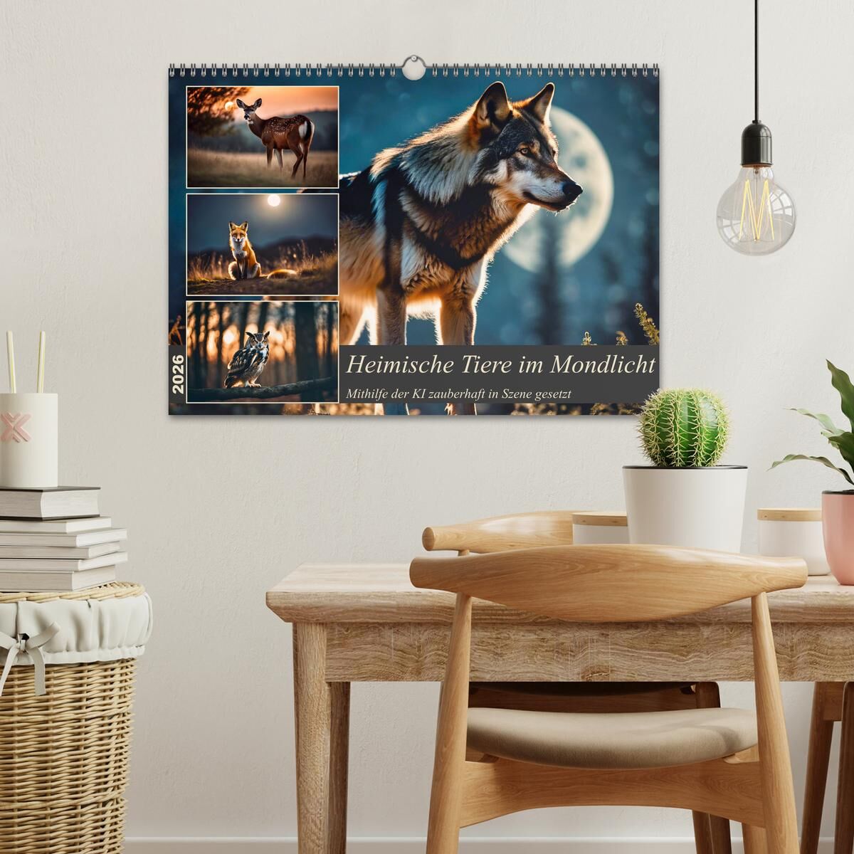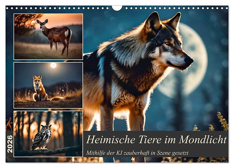 Heimische Tiere im Mondlicht (Wandkalender 2026 DIN A3 quer), CALVENDO Monatskalender