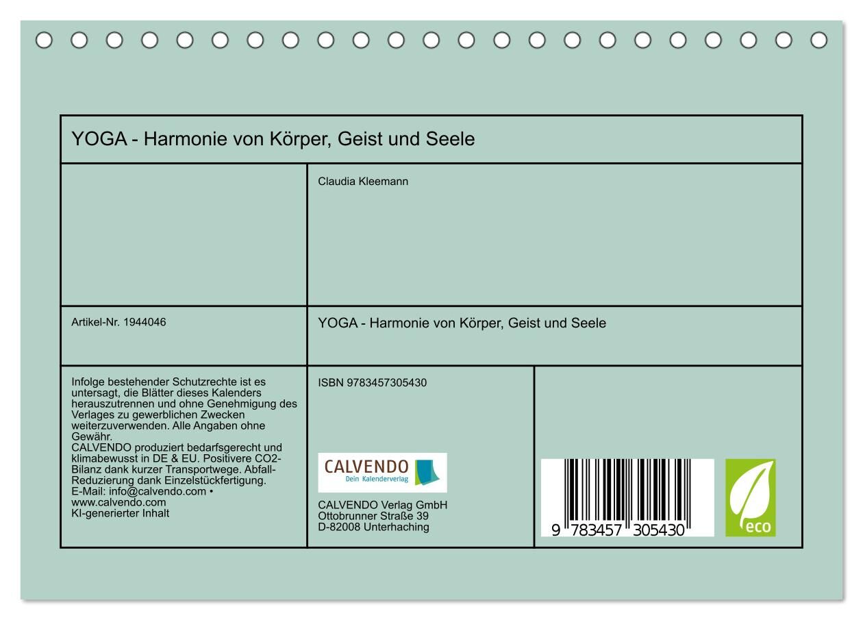 YOGA - Harmonie von Körper, Geist und Seele (Tischkalender 2026 DIN A5 quer), CALVENDO Monatskalender