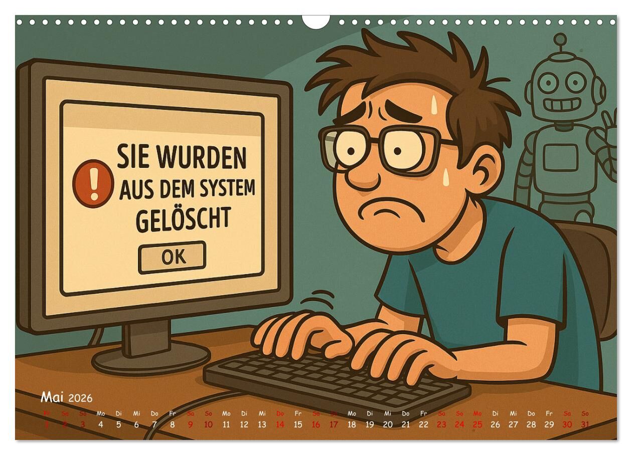 Montag? Kein Problem mit diesem Kalender lachst du dich durch das Bürochaos! Egal ob dein Drucker in Flammen steht, du auf der Suche nach dem letzten Kaffee bist oder dein Kundenservice zum Musical wird dieser Kalender kennt deine Alltagsdramen nur zu gut. Mit...Montag? Kein Problem mit diesem Kalender lachst du dich durch das Bürochaos! Egal ob dein Drucker in Flammen steht, du auf der Suche nach dem letzten Kaffee bist oder dein Kundenservice zum Musical wird dieser Kalender kennt deine Alltagsdramen nur zu gut. Mit zwölf humorvollen Illustrationen bringt er jeden Monat zum Schmunzeln ein Muss für alle Schreibtischtäter, Faxgeräte-Flüsterer und Montagsüberlebenden. 🎯 Ideal fürs Büro, Homeoffice oder als Geschenk für Kolleg:innen mit Humor!