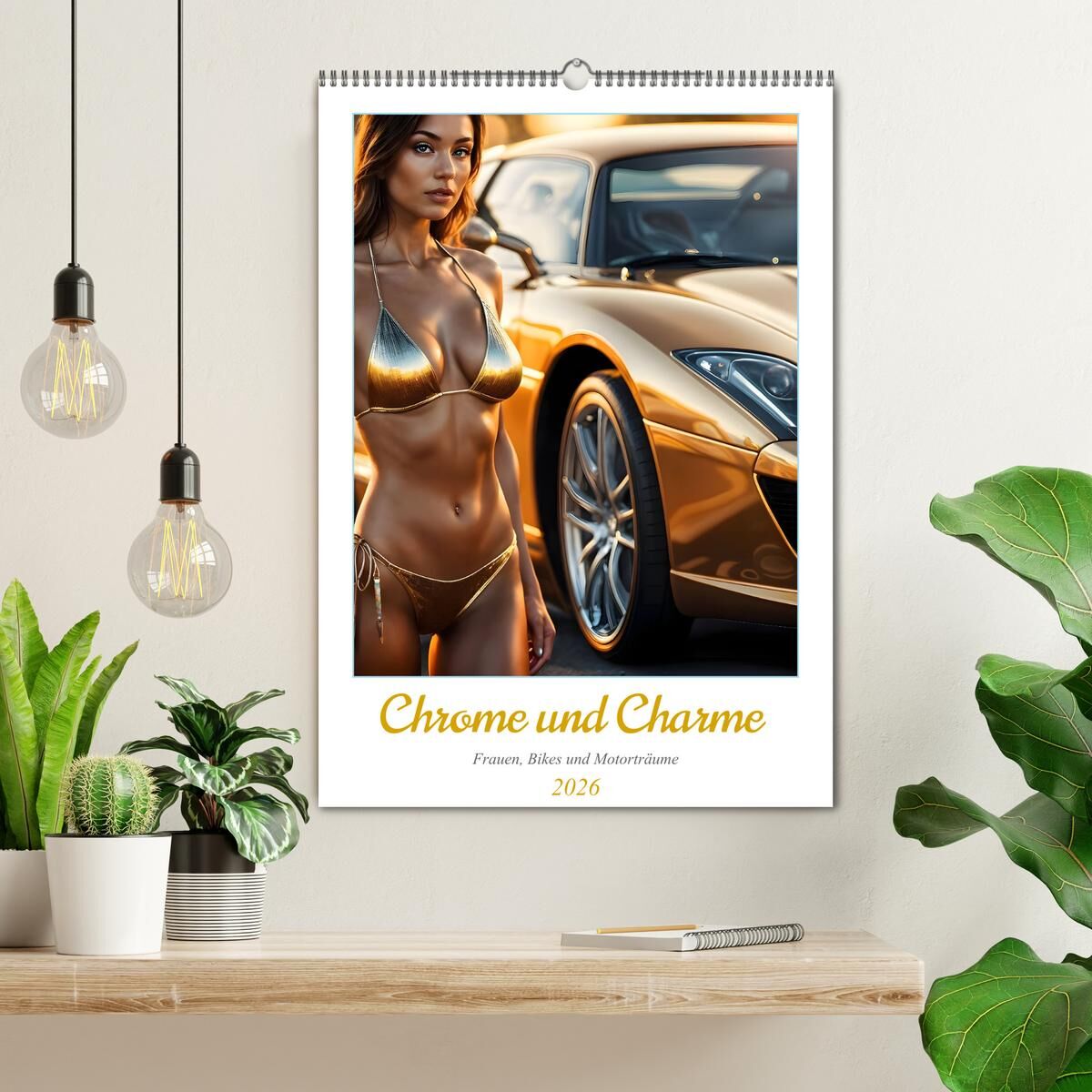 Chrome und Charme - Frauen, Bikes und Motorträume (Wandkalender 2026 DIN A2 hoch), CALVENDO Monatskalender