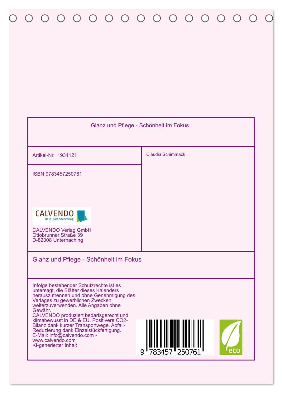 Glanz und Pflege - Schönheit im Fokus (Tischkalender 2026 DIN A5 hoch), CALVENDO Monatskalender