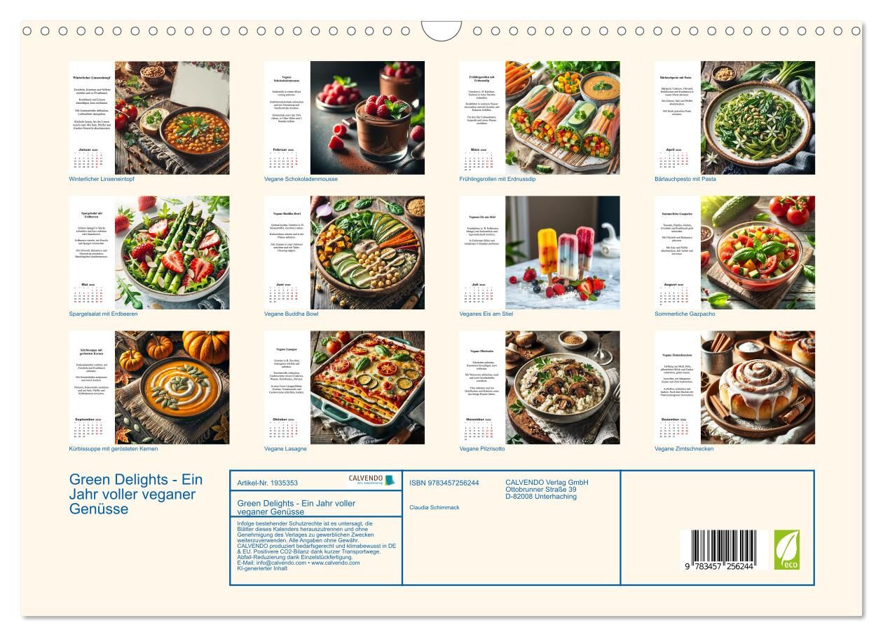 Green Delights - Ein Jahr voller veganer Genüsse (Wandkalender 2026 DIN A3 quer), CALVENDO Monatskalender