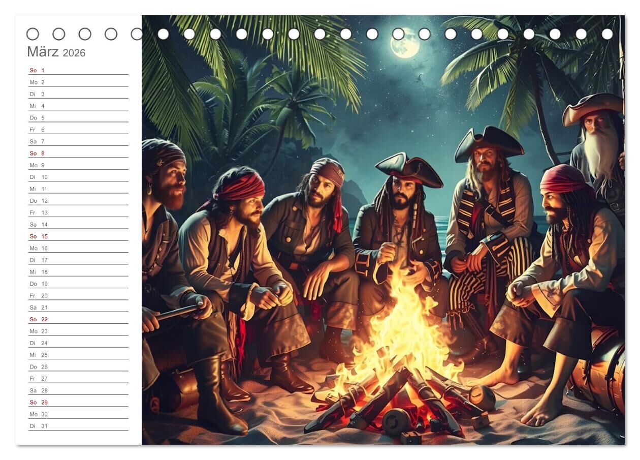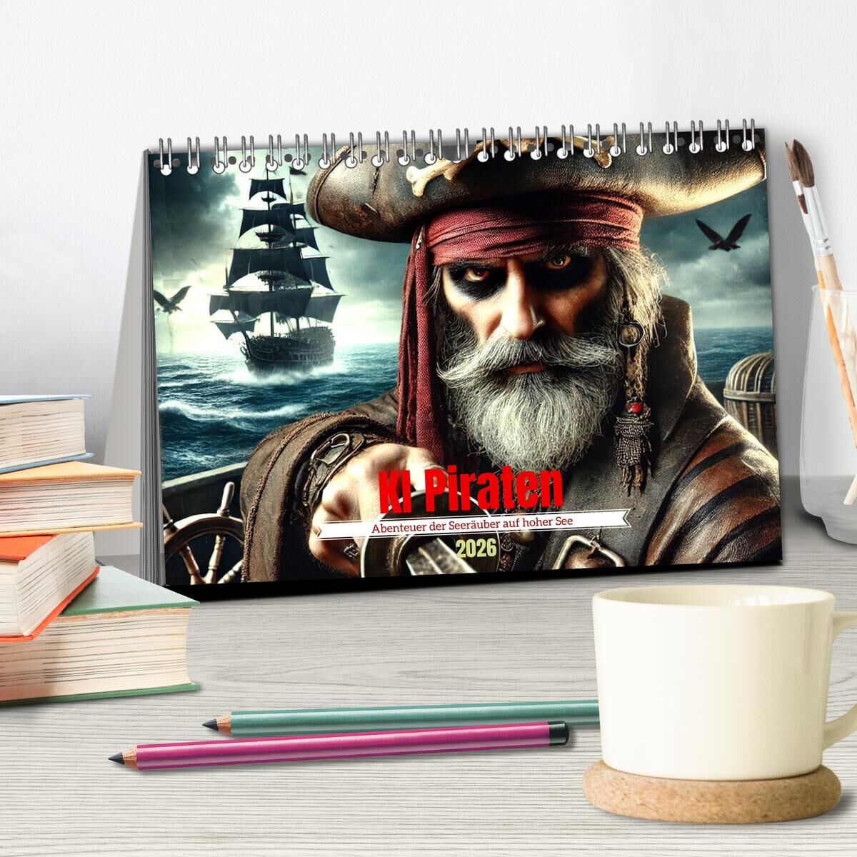 KI Piraten - Abenteuer der Seeräuber auf hoher See (Tischkalender 2026 DIN A5 quer), CALVENDO Monatskalender