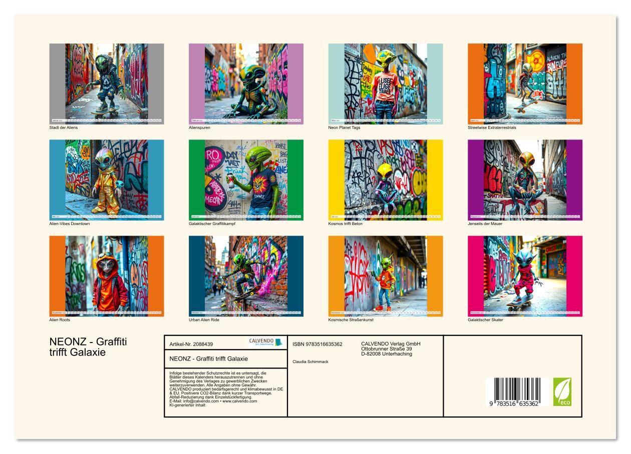 NEONZ - Graffiti trifft Galaxie (hochwertiger Premium Wandkalender 2026 DIN A2 quer), Kunstdruck in Hochglanz