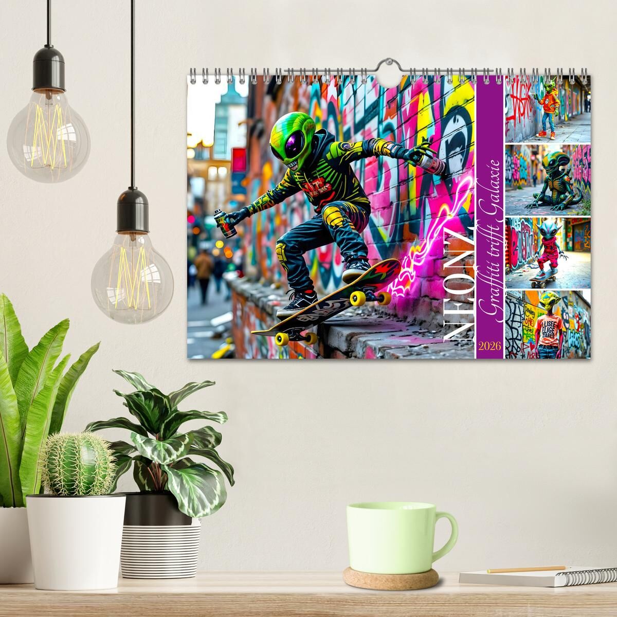 NEONZ - Graffiti trifft Galaxie (Wandkalender 2026 DIN A4 quer), CALVENDO Monatskalender