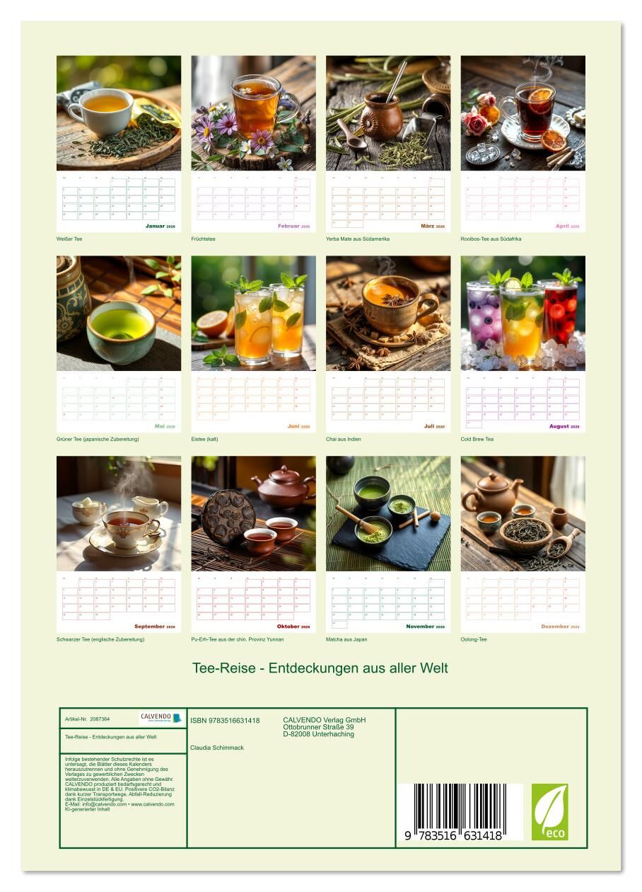 Entdecken Sie die faszinierende Welt des Tees mit unserem KI-Kalender Tee-Reise - Entdeckungen aus aller Welt. Lassen Sie sich Monat für Monat von atemberaubenden Bildern und inspirierenden Einblicken in die vielfältigen Teekulturen rund um den Globus verzaube...