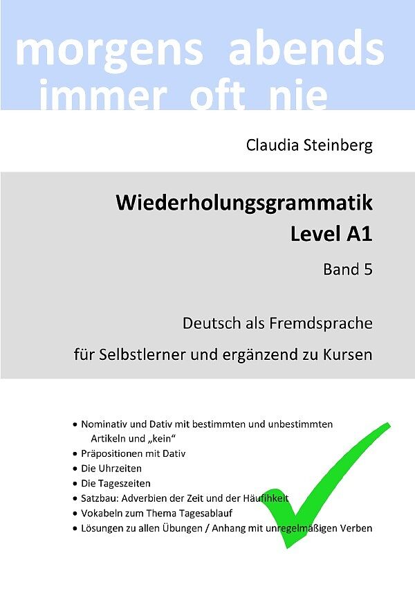 Die Autorin Claudia Steinberg unterrichtet seit 2019 Deutsch als Fremdsprache. Sie ist Muttersprachlerin und hat Erfahrung im Unterricht der Level A1 bis C1. Autorentext Dozentin für Deutsch als Fremdsprache seit 2019, Muttersprachlerin, Erfahrung im Unterrich...