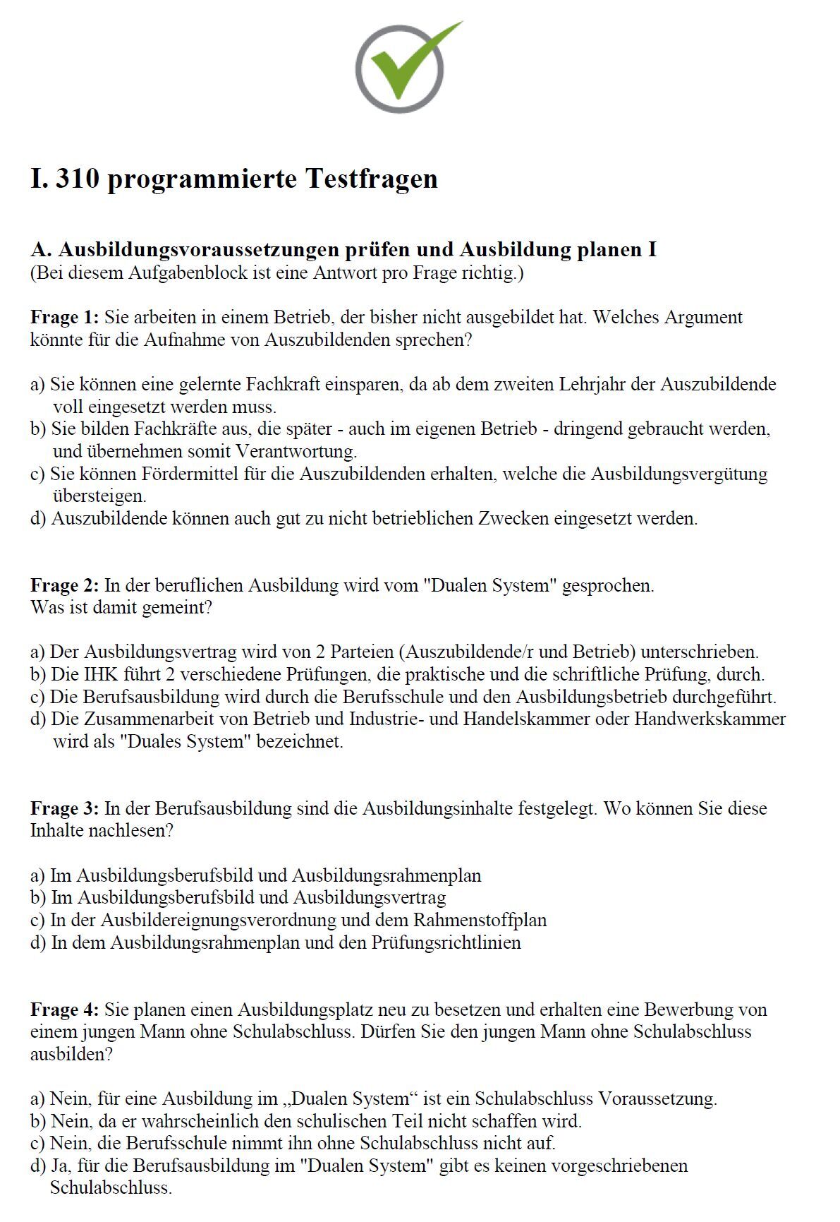 Top-Aevo Prüfungsbuch - Erweiterte Auflage mit 310 Testfragen zum Ausbilderschein / AdA. Das Buch mit praktischer Ringbindung dient zur effektiven Vorbereitung auf die Ausbildereignungsprüfung. Das erlernte Wissen wird überprüft, Schwachstellen werden aufgedec...