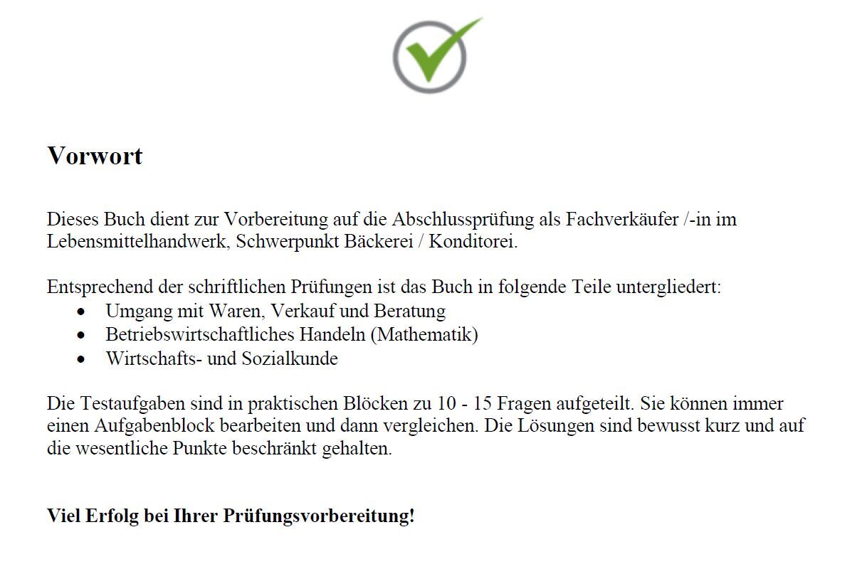Dieses Buch dient zur Vorbereitung auf die Abschlussprüfung als Fachverkäufer /-in im Lebensmittelhandwerk, Schwerpunkt Bäckerei / Konditorei. Sie können sich mit diesem Buch gezielt und effektiv auf mögliche Fragen vorbereiten. Die Übungsaufgaben sind in prak...