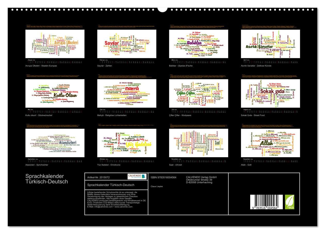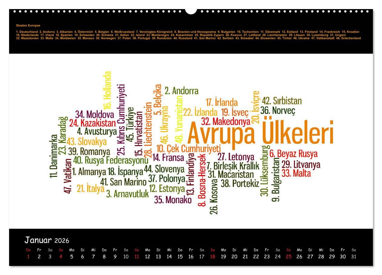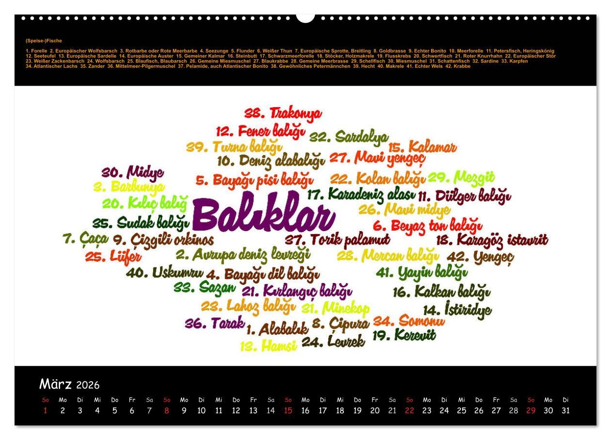 Sprachkalender Türkisch-Deutsch (hochwertiger Premium Wandkalender 2026 DIN A2 quer), Kunstdruck in Hochglanz