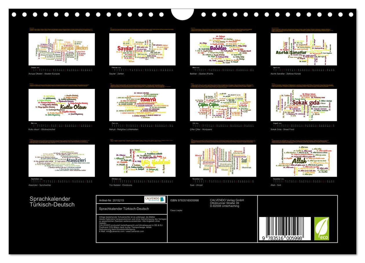 Mit diesem Kalender werden Ihnen 12 ausführliche thematische Wortschätze in Form von Wordclouds vorgestellt, um Ihre Türkisch- und Deutschkenntnisse zu vertiefen: Staaten Europas - Zahlen - Speisefische - Zeitlose Handwerkskünste - Glückwünsche - Religiöse Lic...
