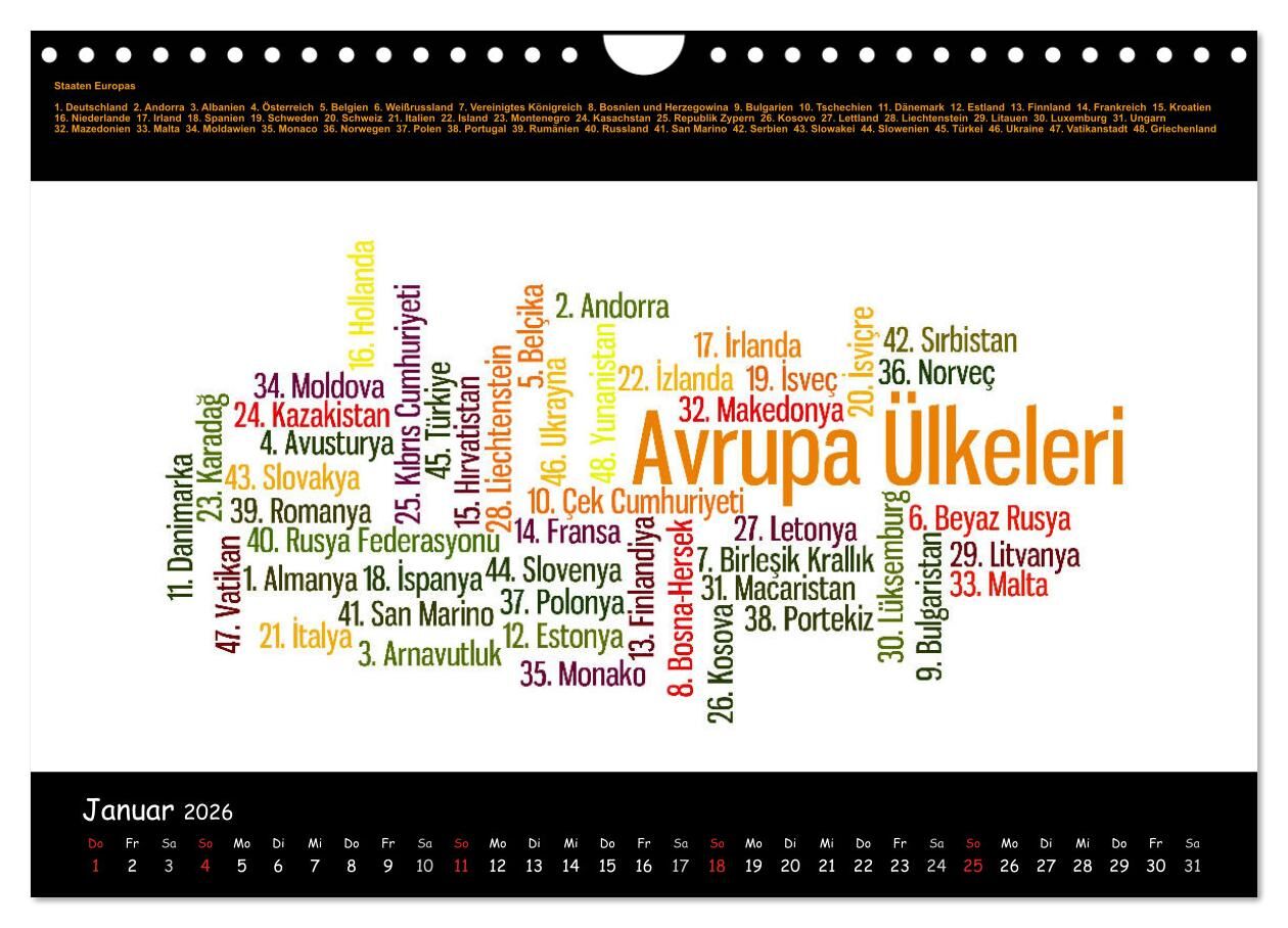 Sprachkalender Türkisch-Deutsch (Wandkalender 2026 DIN A4 quer), CALVENDO Monatskalender