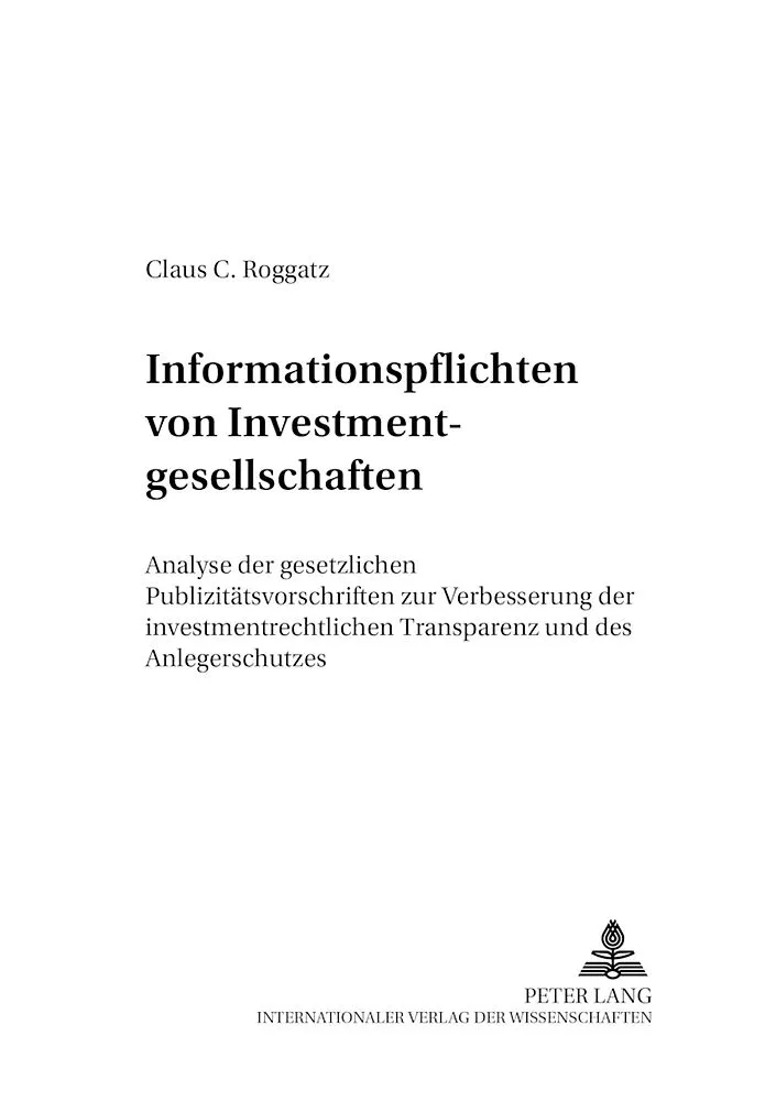 Gegenstand der Arbeit ist das 1957 verabschiedete Gesetz über Kapitalanlagegesellschaften (KAGG) und die sich daraus ergebenden Publizitäts- und Informationspflichten der Investmentfondsgesellschaften. Es wird der Frage nachgegangen, ob die Verkaufsunterlagen ...