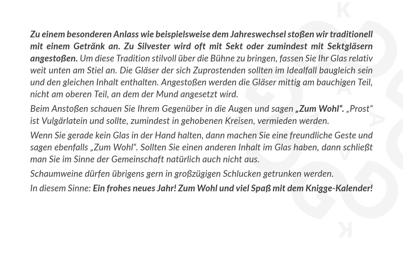 Tägliches Knigge-Coaching - modern und unterhaltsam Wie hätte Knigge wohl Pommes gegessen? Was tue ich bei einer Verspätung? Wie führe ich guten Smalltalk? Was lehrt uns der Facetime-Knigge? Und was ist eigentlich ein Proletenbesteck? Das und noch vieles mehr...