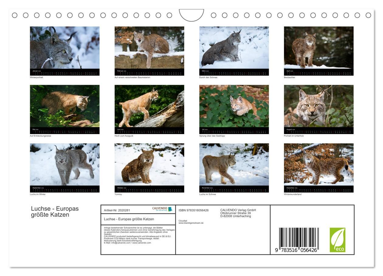 Der Luchs, die größte, europäische Katze kehrt langsam wieder in unsere Wälder zurück. Der Kalender möchte Ihnen den Luchs, liebevoll auch Pinselohr genannt, ein Stück näher bringen. Die Redaktion hat diesen Kalender für die CALVENDO Gold-Edition ausgewählt.
