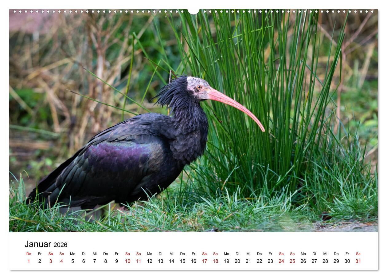 Der Waldrapp - Ein skurriler Vogel (Wandkalender 2026 DIN A2 quer), CALVENDO Monatskalender