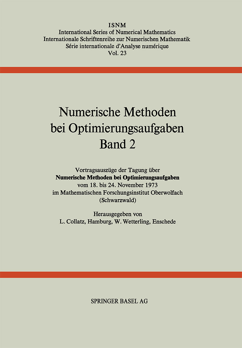 Am Mathematischen Forschungsinstitut Oberwolfach fand in der Zeit vom 18. bis 24. November 1973 eine Tagung über «Numerische Methoden bei Optimierungsaufgaben» unter der Leitung der Unterzeichneten statt, auf der naturgemäß die Fortschritte gegenüber den 1967,...