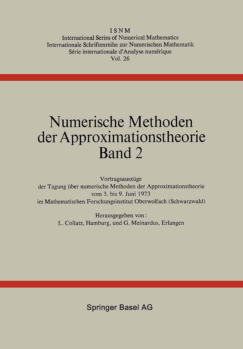 Dieser Band bringt Manuskripte zu Vorträgen einer Tagung, die in Oberwolfach vom 3. 6. bis 9. 6. 1973 unter Leitung der Unterzeichner veranstaltet wurde. Die letzte Tagung über numerische Probleme der Approximationstheorie in Oberwolfach fand 1971 statt. Daher...