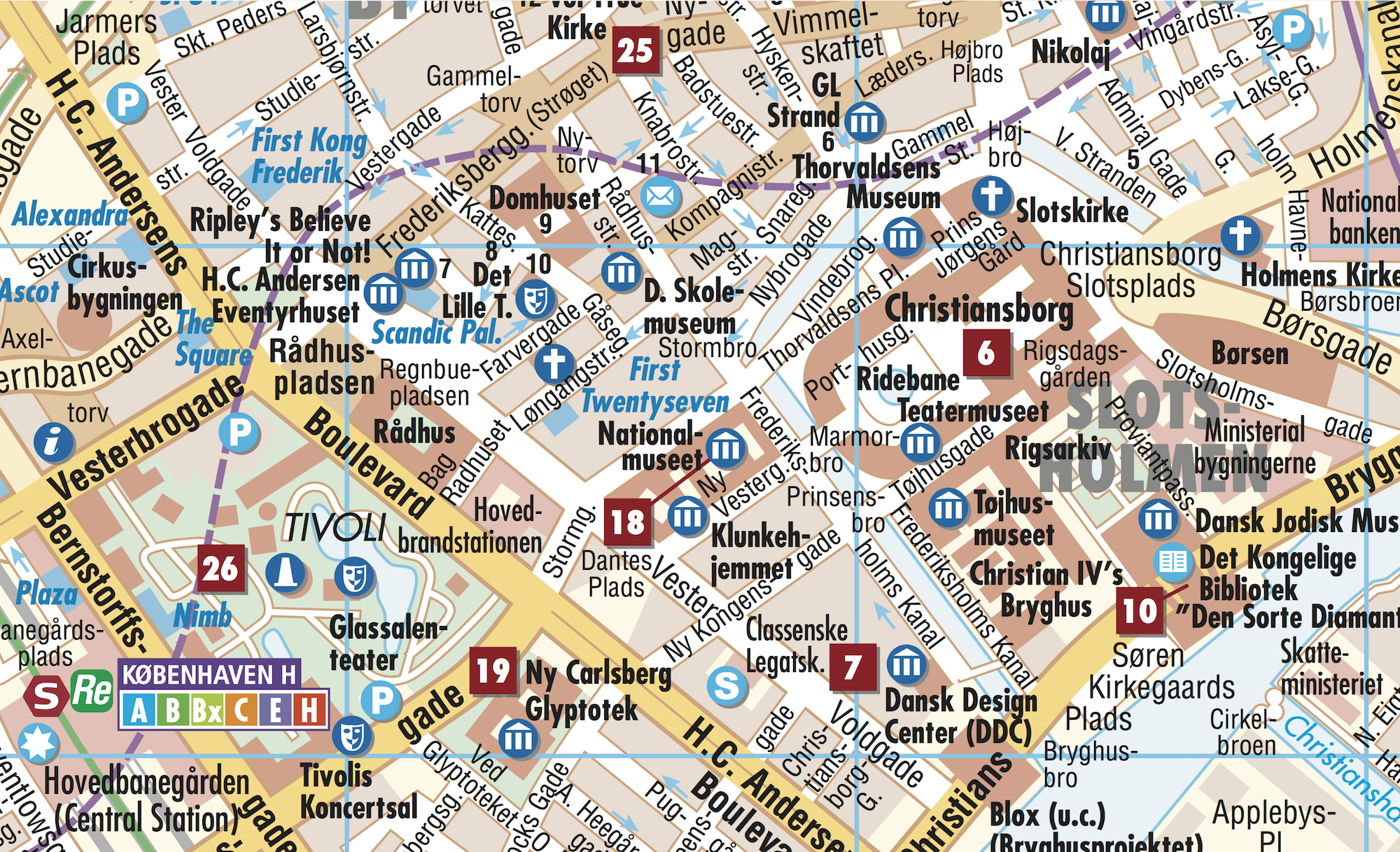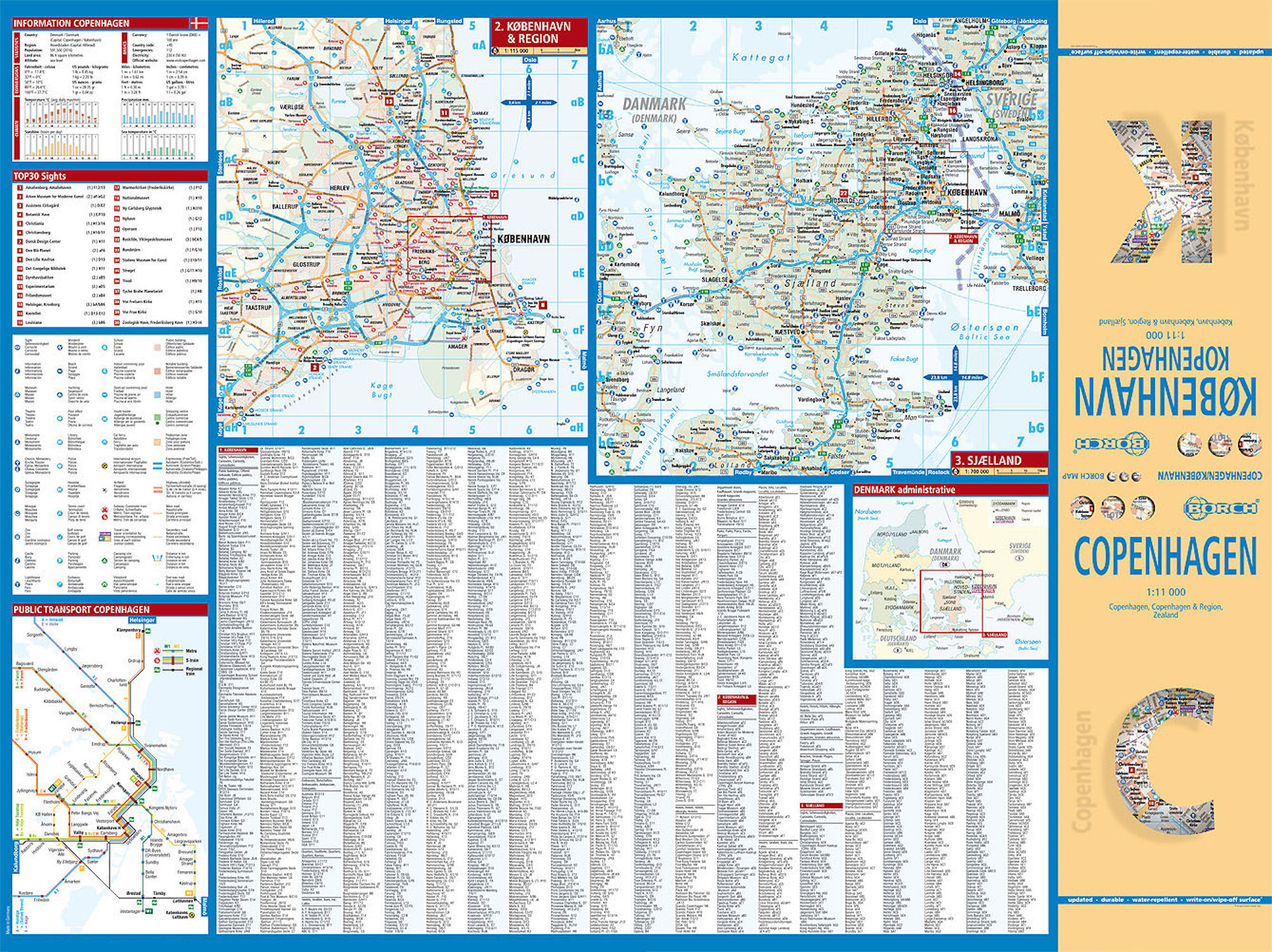 Our laminated and folded Borch Map of Copenhagen in the 13th edition contains: Copenhagen 1:11 000, Copenhagen & Region 1:115 000, Kastrup Airport 1: 30 000, Zealand 1:700 000, the public transport system and an administrative map of Denmark. Borch Maps co...