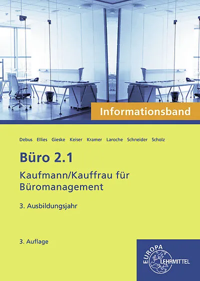 Lehr- und Lernbuch für den Ausbildungsberuf Kaufmann/Kauffrau für Büromanagement. Der Informationsband ist Bestandteil des umfassenden Europa-Programms Büro 2.1. Büro 2.1 folgt dem kompetenzorientierten Rahmenlehrplan nach dem Lernfeldkonzept. Die Unterrichtsw...