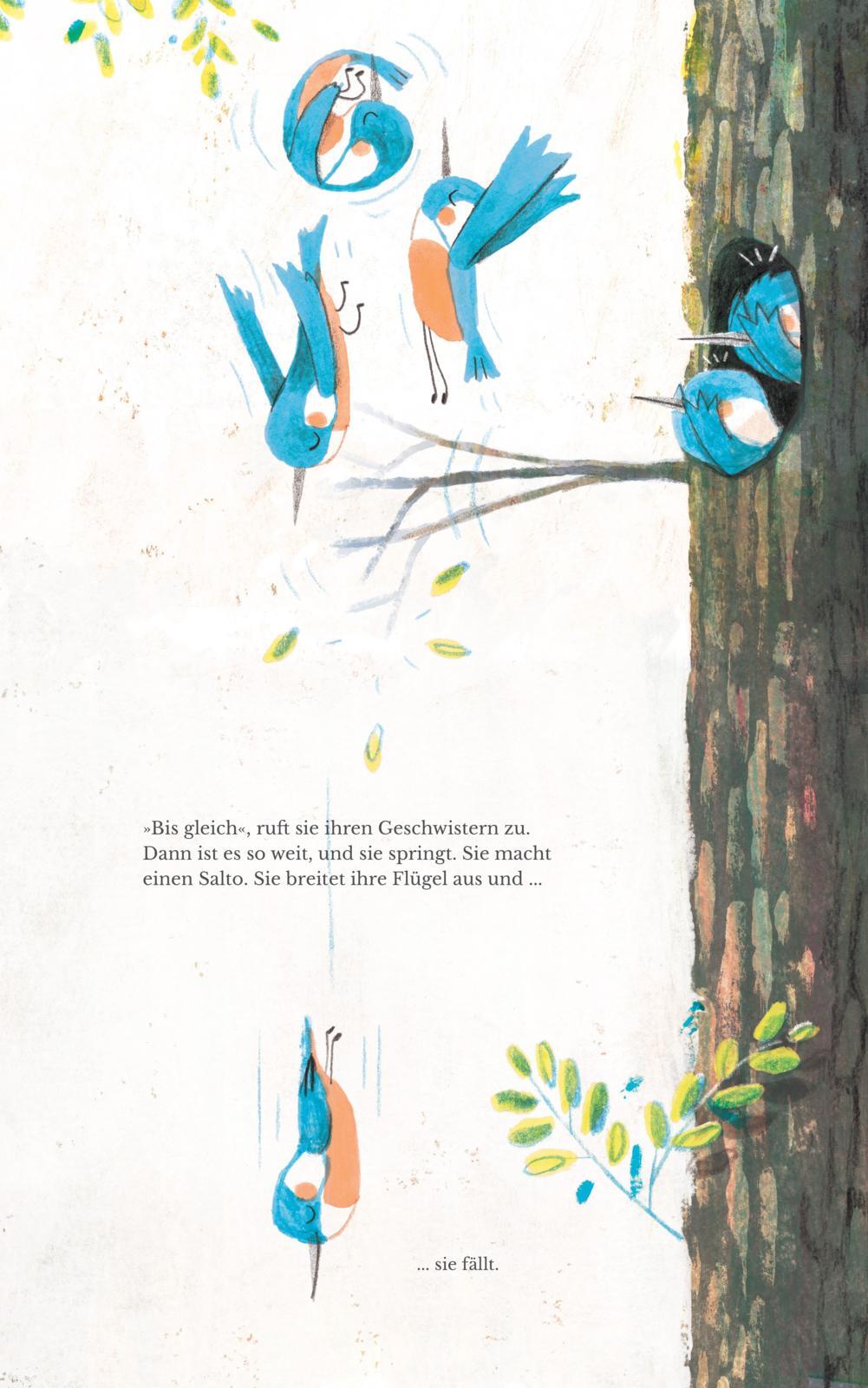 Eine wundervolle Trau-Dich!-Geschichte für Kinder ab 4 Jahren. Aus heiterem Himmel macht das kleine Eisvogelmädchen Pips eines Tages einen beeindruckenden Luftsalto, bevor es kopfüber den Baumstamm hinunterrast. Damit versetzt sie die Tiere, die unter ihr im ...