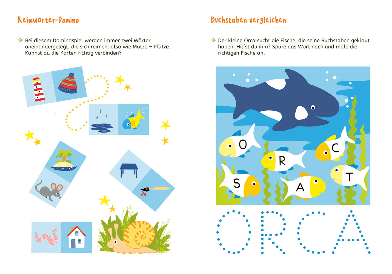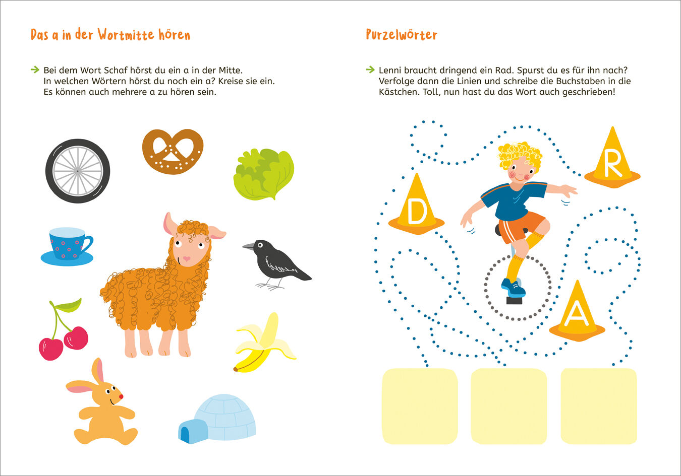 Was reimt sich auf Schnee? Wo ist ein a zu hören? Welche Wörter beginnen mit einem E? Spielerische Übungen geben Vorschulkindern ein erstes Gespür für Laute, Buchstaben und Wörter. Die bunt illustrierten Aufgaben bereiten kindgerecht und unterhaltsam auf das L...