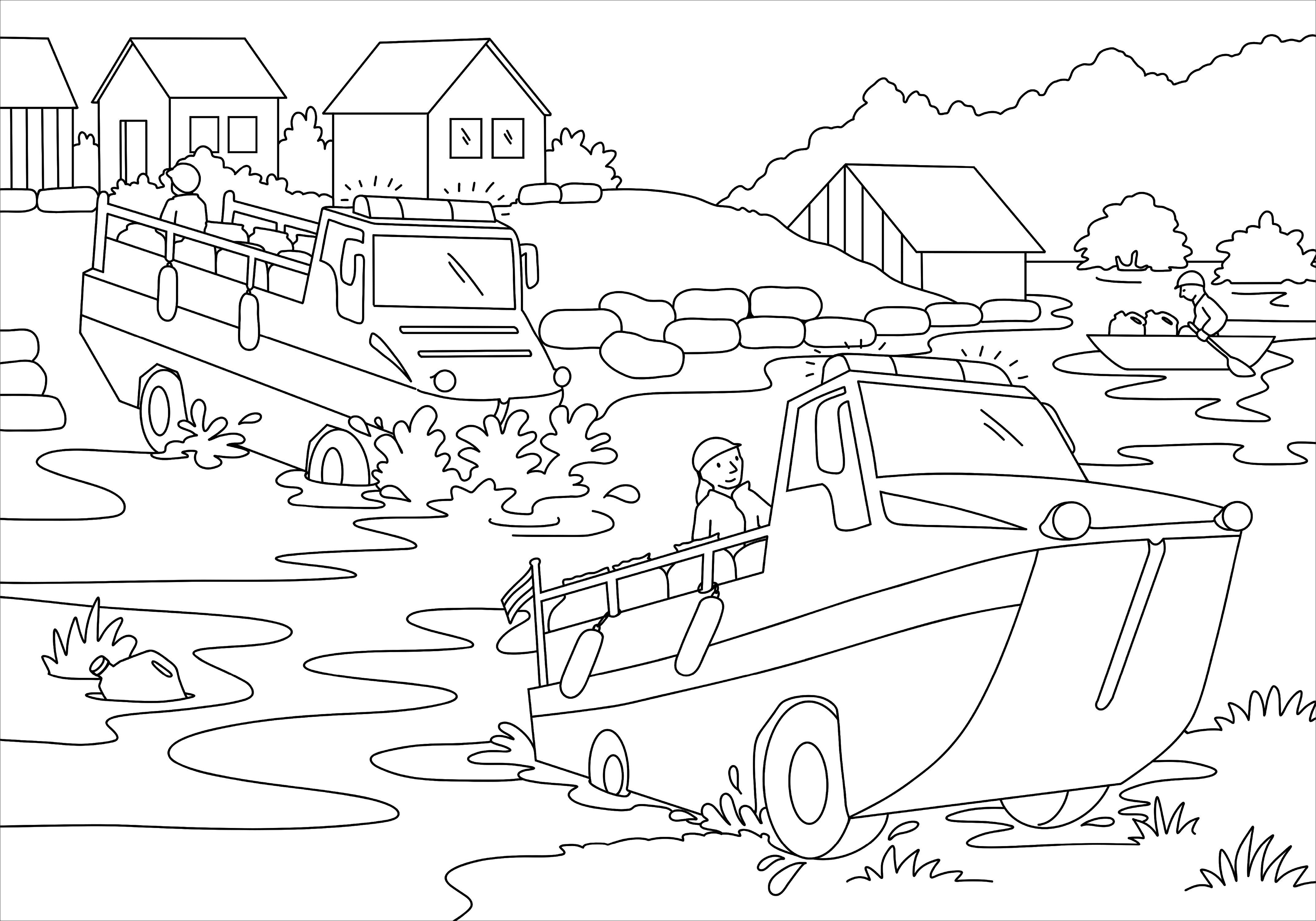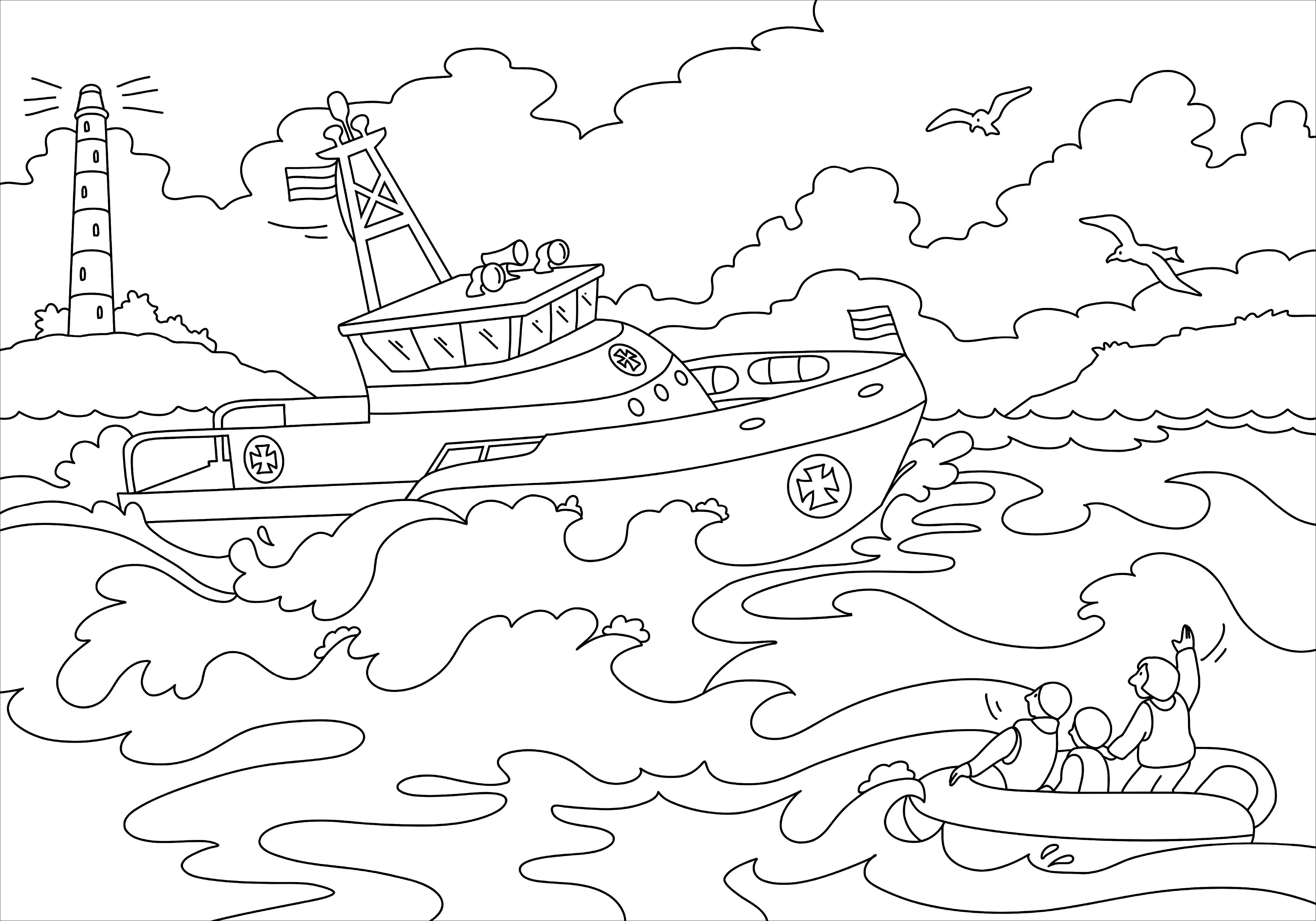 Jetzt muss es schnell gehen: Der Krankenwagen und der Notarzt sind auf dem Weg zu einem Notfall. Der Seenotkreuzer hilft einem havarierten Schiff und auch der Auto-Abschlepper ist im Einsatz. Die spannenden Szenen brauchen nur noch etwas Farbe. Kein Problem! R...