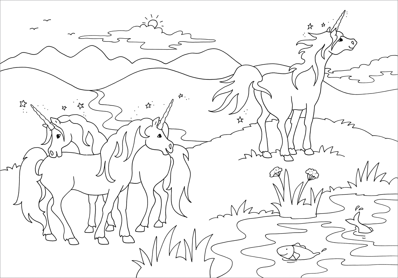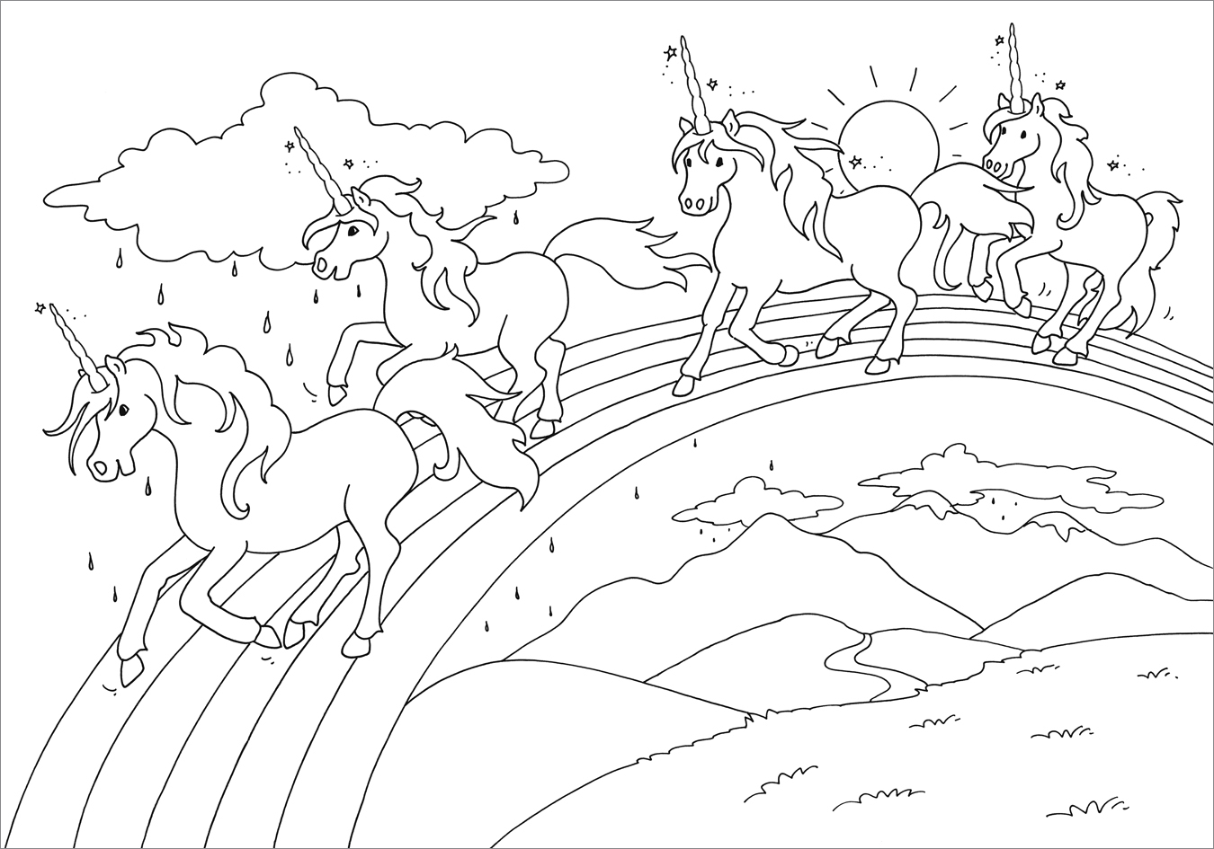 Einhörner unterm Sternenhimmel, über den Regenbogen galoppierend oder mit zarten Elfen spielend die Motive in diesem zauberhaften Malbuch lassen die Herzen von Fans der magischen Wesen höherschlagen. Doppelseitige Szenen mit Motiven aus der traumhaften Welt de...