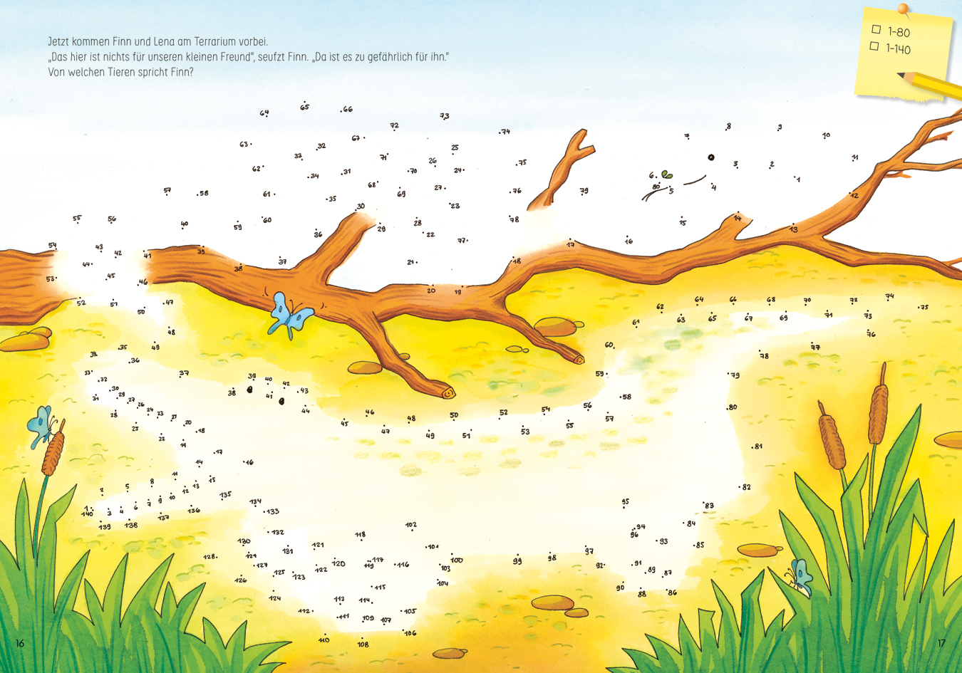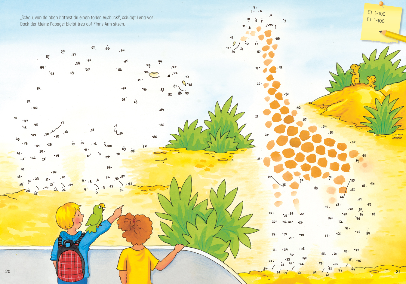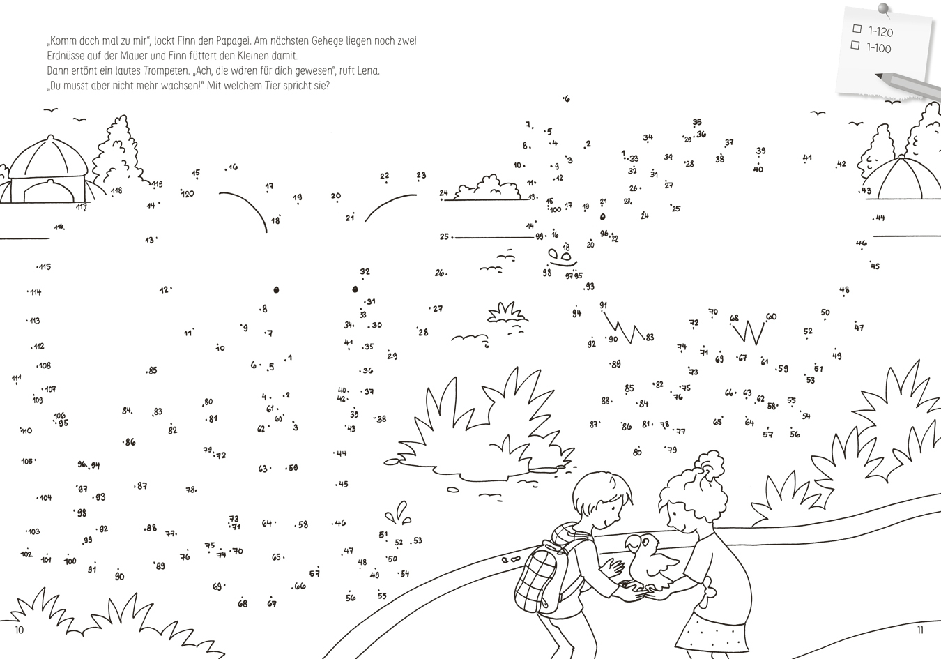 Nashorn und Nilpferd, Lama und Antilope, Pfau und Flamingo auf ihrem Rundgang durch den Zoo treffen die Kinder auf jede Menge Tiere. Aber Moment, so einfach ist es nicht! Die verschiedenen Tiere verstecken sich in Zahlen bis zu 140 und müssen erst von Punkt zu...