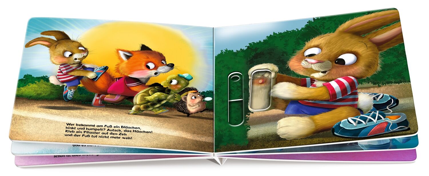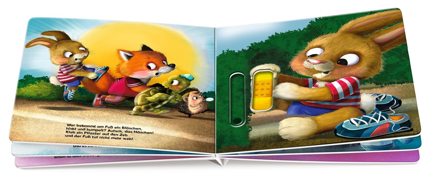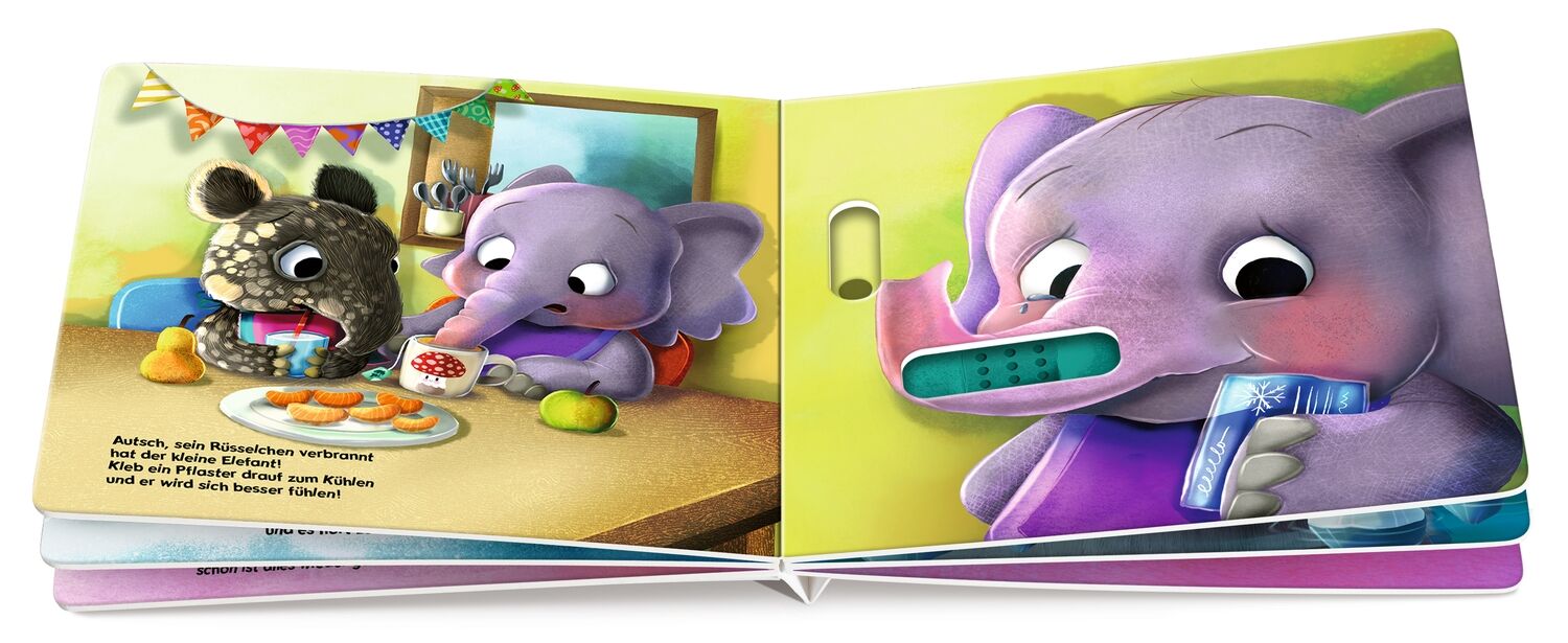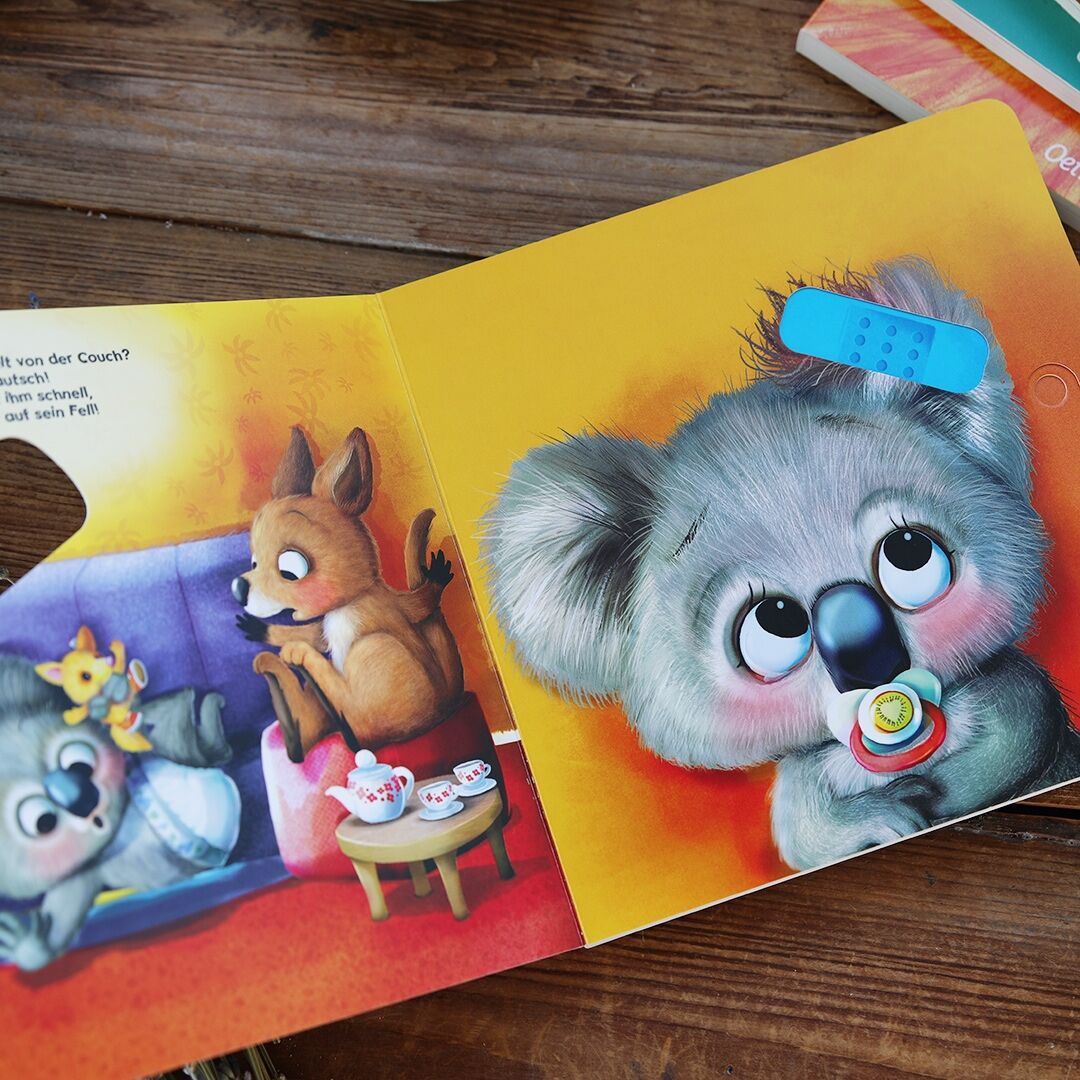 Pusten, trösten, Pflaster drauf! In diesem niedlichen Pappbilderbuch haben sich die Tierkinder weh getan: Der Koala hat eine Schramme am Ohr, der Hase eine Blase am Fuß und der Elefant hat sich den Rüssel verbrannt. Da hilft nur trösten, pusten und ein Pflast...