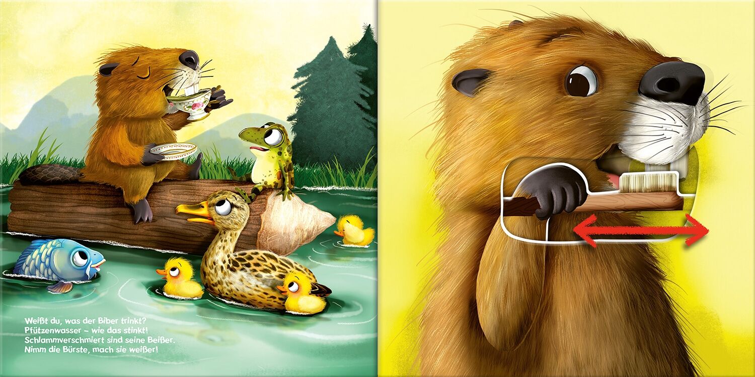 In "Putz die Zähne blitzeblank" erleben Kinder ein spannendes Abenteuer, in dem sie den Tieren im Zoo helfen, ihre Zähne zu putzen. Vom Tiger mit etwas zwischen den Zähnen über den Biber mit fleckigen Nagezähnen bis hin zum Nilpferd mit grasgrünen Tupfern auf...