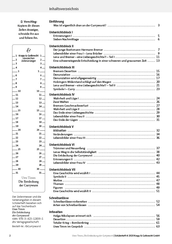 Unser Schülerarbeitsheft begleitet bei der Erschließung des Romans Die Entdeckung der Currywurst von Uwe Timm und dessen Themen. Das Unterrichtsmaterial mit abwechslungsreichen Aufgaben, Arbeitsblättern, Hilfestellungen und einer schülernahe Gestaltung mit Il...