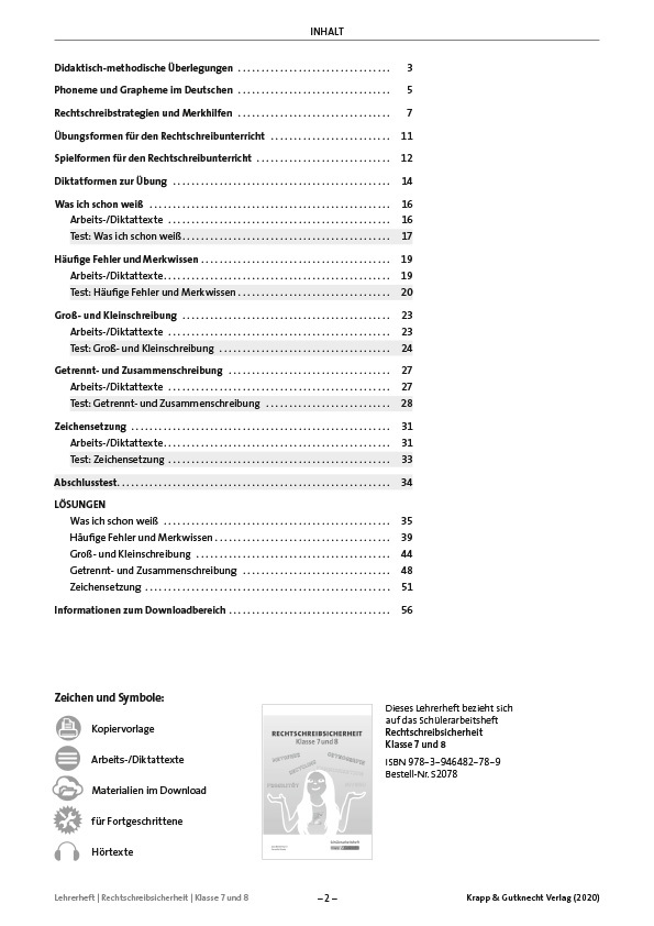 Unser Lehrerheft zum Schülerarbeitsheft zu Rechtschreibsicherheit Klasse 7 und 8 aus unserer Reihe Rechtschreibung und Zeichensetzung ermöglicht ein gezieltes Training für eine sichere Rechtschreibung in Deutsch. Durch die Wiederholung typischer Rechtschreibp...