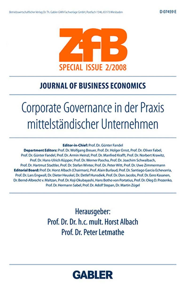 Dieses Special Issue untersucht typische Corporate Governance-Probleme mittelständischer Unternehmen in ihrer Bedeutung für eine werteorientierte Unternehmensführung. Dabei werden Beziehungen mittelständischer Unternehmen zu spezifischen Anspruchsgruppen verti...