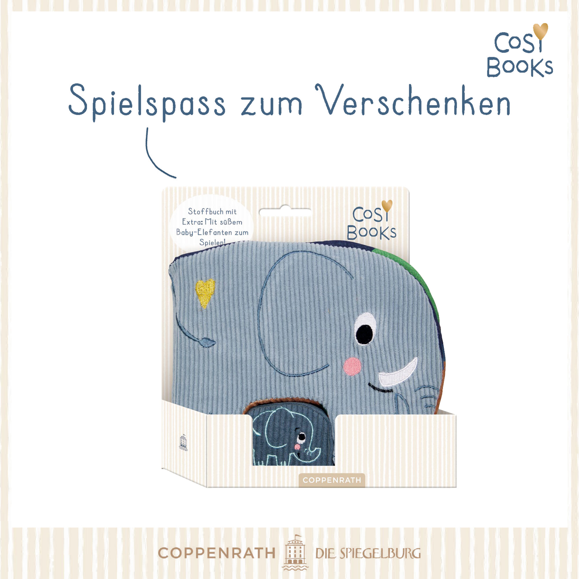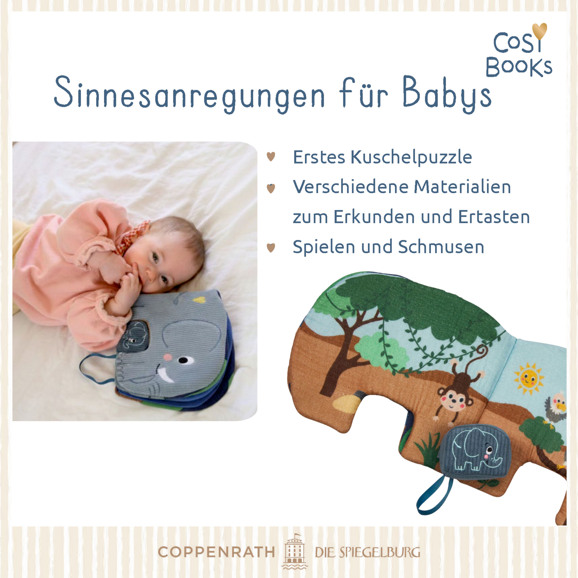 CosyBooks: Babys Spielbuch Kleiner Elefant - Mit süßem Baby-Elefanten zum Spielen! Ein weiches Elefanten-Stoffbuch für Kinder ab 6 Monaten, das Motorik, Nähe und erstes Entdecken verbindet Mit süßer Elefantenfigur am Satinband: Sicher befestigt und leicht zu g...
